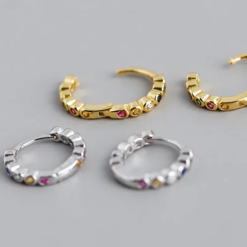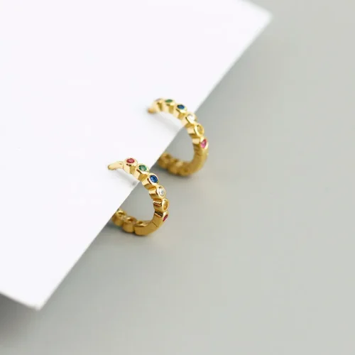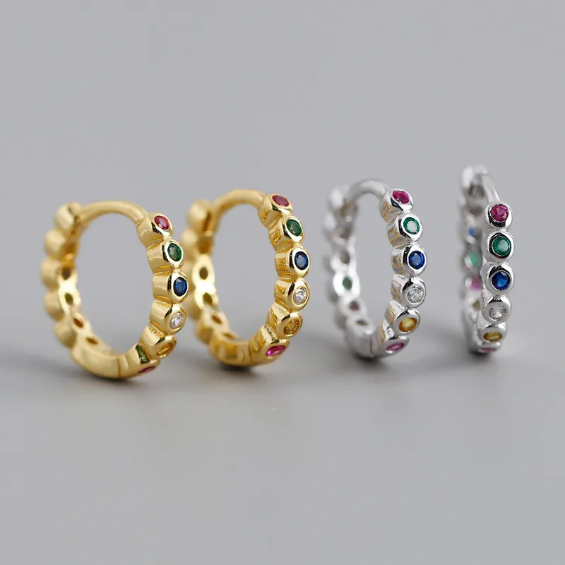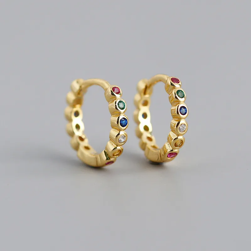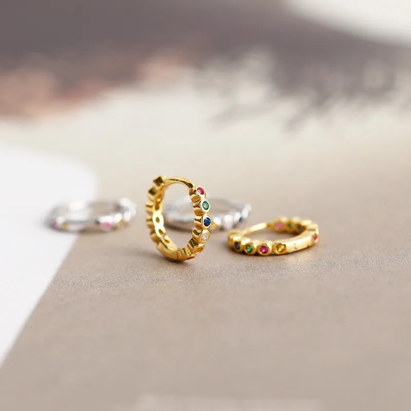 Product Name: 18K Gold Plate 925 Sterling Silver Round Shape rainbow Multicolor Cz Hoop huggies Earrings