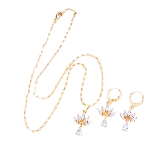 Product Name: 18K Gold Plated Classic Style Necklace Earrings Set for Wedding Anniversary or Party Engagement with Zircon as Main Stone