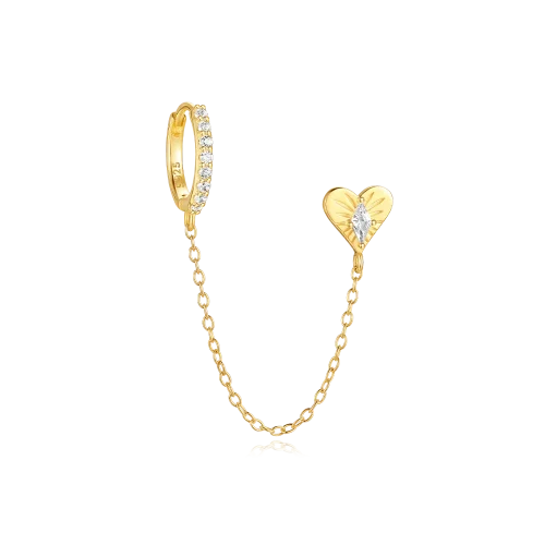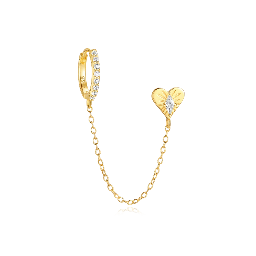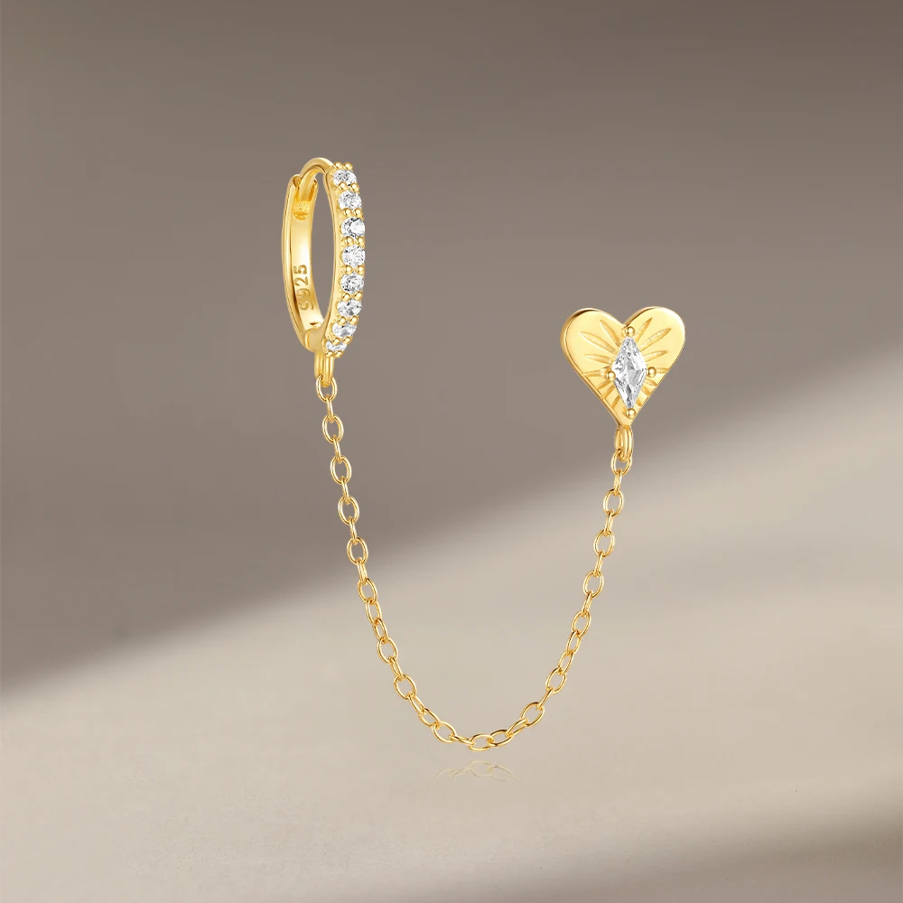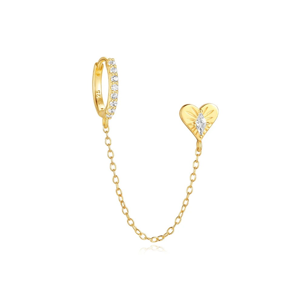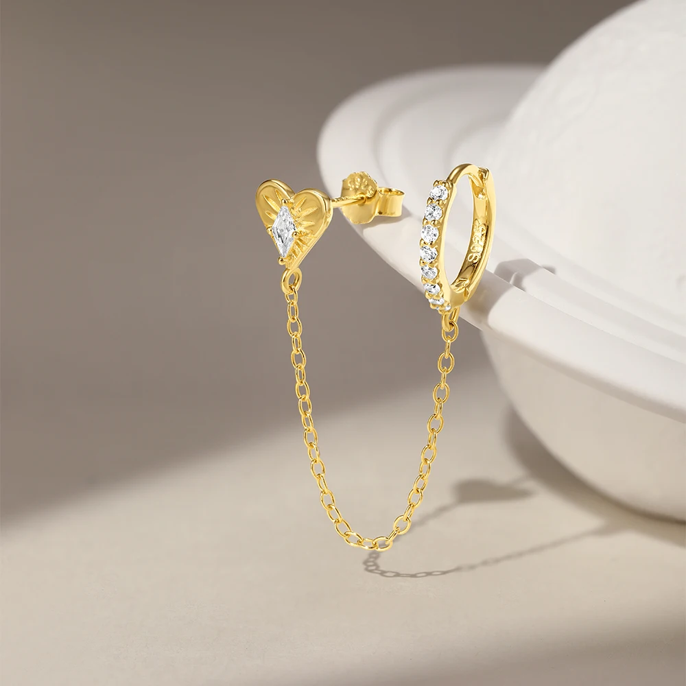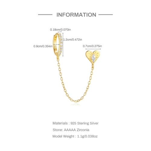Product Name: 18K Gold Plated Fashion Heart Zircon Non Pierced S925 Silver Single Type Jewelry Earrings Stud