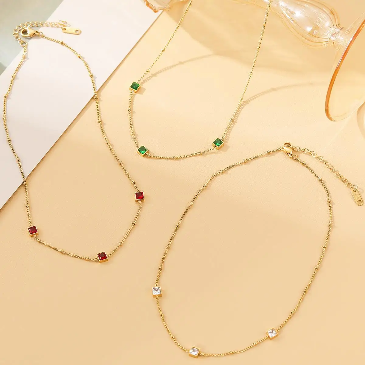 Product Name: 18K Gold Plated French Square Necklaces Women Fine Match Color Real Zirconium Titanium Steel commuter Fashion Jewelry
