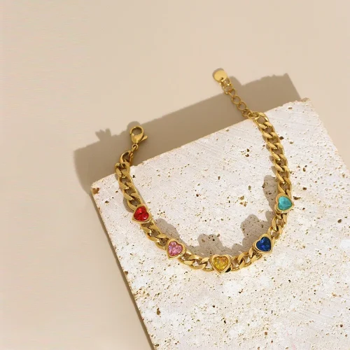 Product Name: 18K Gold Plated Heart Bracelet Colorful Zircon Tarnish Free Jewelry for Women