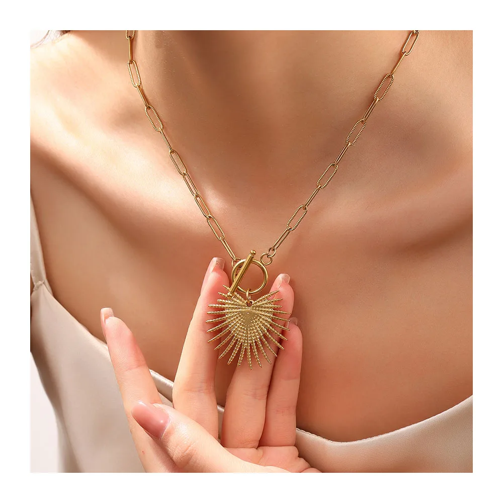 Product Name: 18k Gold Plated Heart Cast Vintage Pendant Stainless Steel Jewelry Necklace 2024 Gold Waterproof Fashion Accessories Bijoux Gift