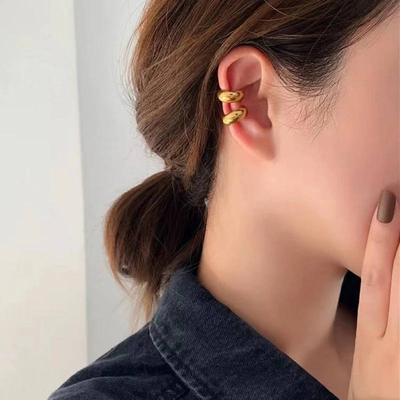 Product Name: 18K Gold Plated Huggie Ear Cuffs for Women Stainless Steel Round Ear Bone Clip Earrings Non-Piercing Ear Jewelry