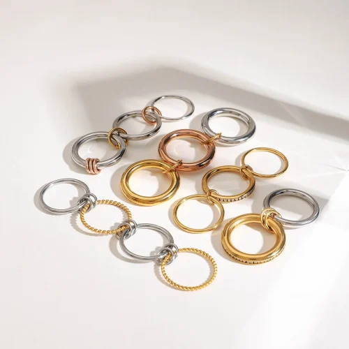 Product Name: 18K Gold Plated Interlocking Pearl & Diamond Ring Two-Tone Trendy Stackable Ring Viral Jewelry