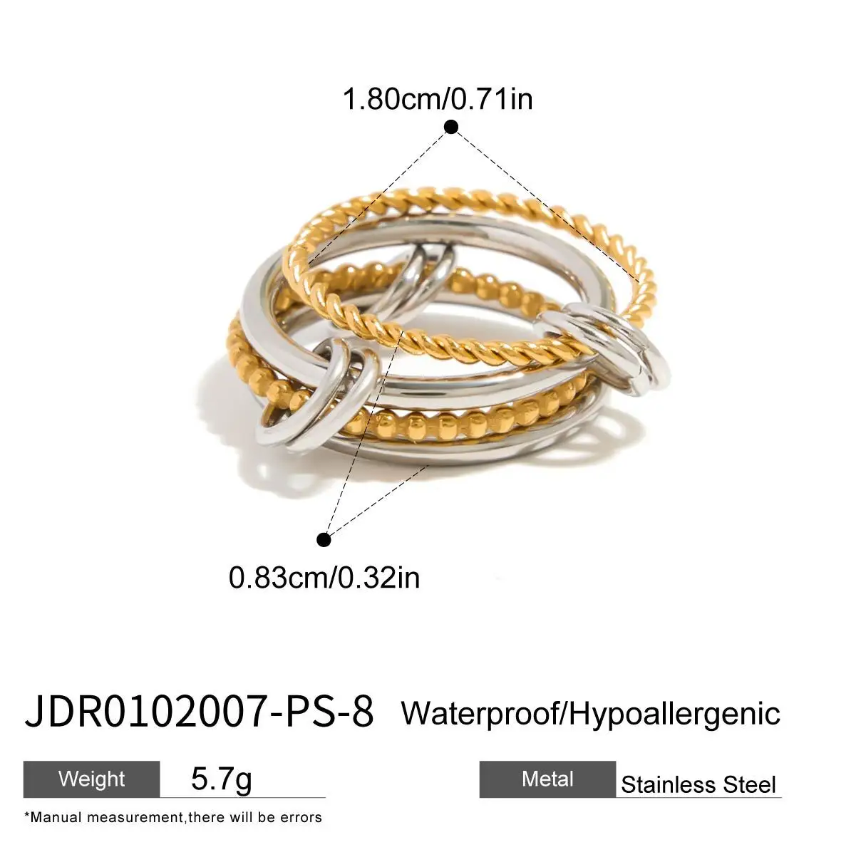 Product Name: 18K Gold Plated Multi-Ring Stackable Stainless Steel Rings Trendy Solid & Two-Tone Colors