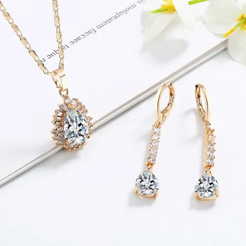 Product Name: 18K Gold Plated Pendant Zirconia Jewelry Set Italian Gold Plated Jewelry Sets Necklace Set for Women