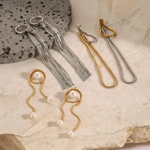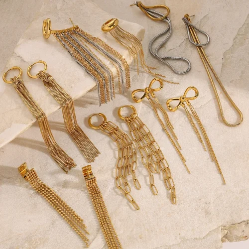18K Gold Plated Stainless Steel Jewelry Waterproof Simple Bamboo Hoop Earrings for Women