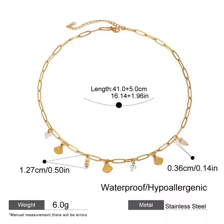 Product Name: 18K Gold Plated Stainless Steel Ocean Theme Necklace Shell Pearl Pendant Adjustable Chain Beach Jewelry for Women