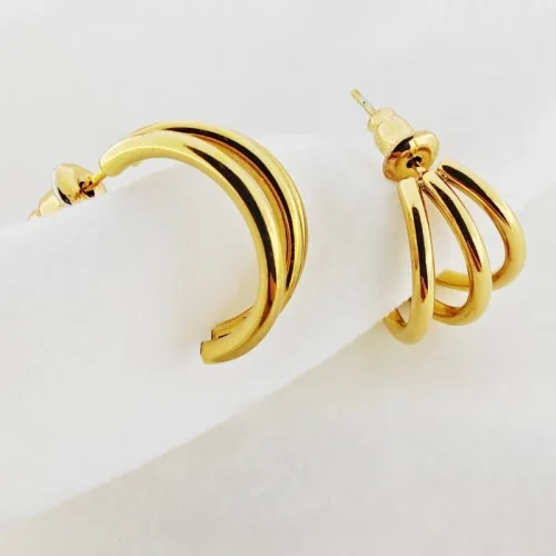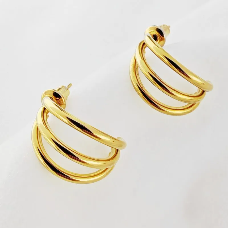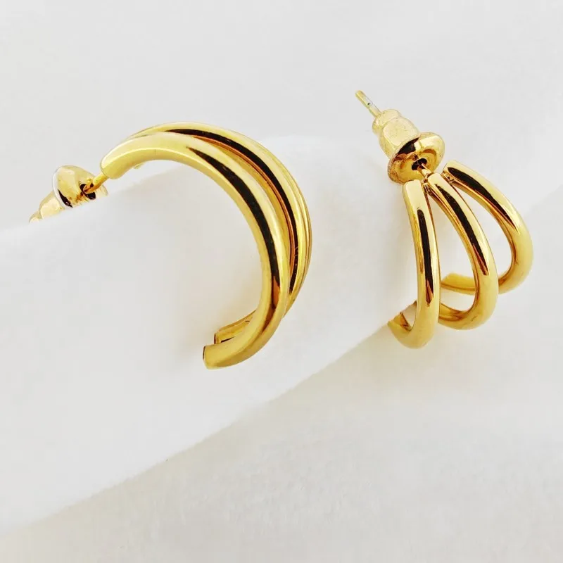 Product Name: 18K Gold Plated Stainless Steel Smooth Triple Wire Fashion Earrings Party Gift Jewelry