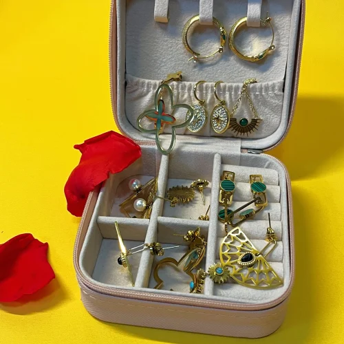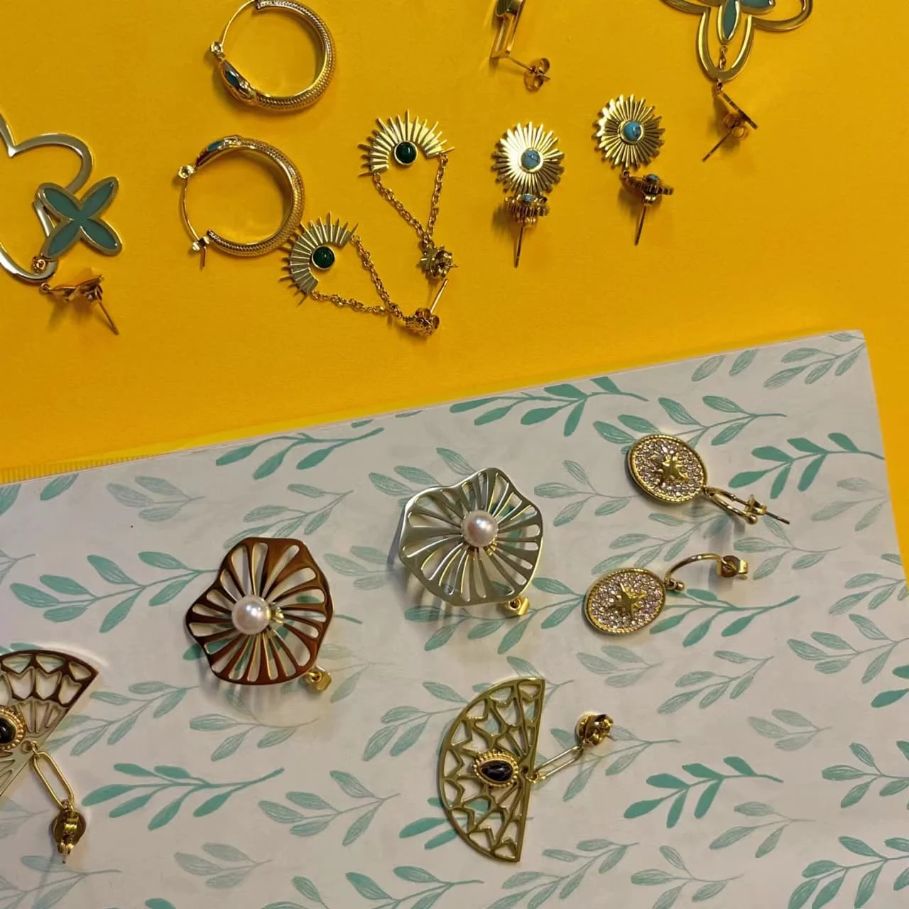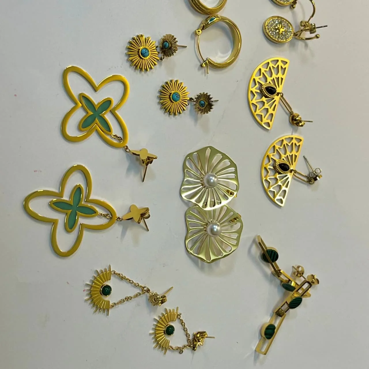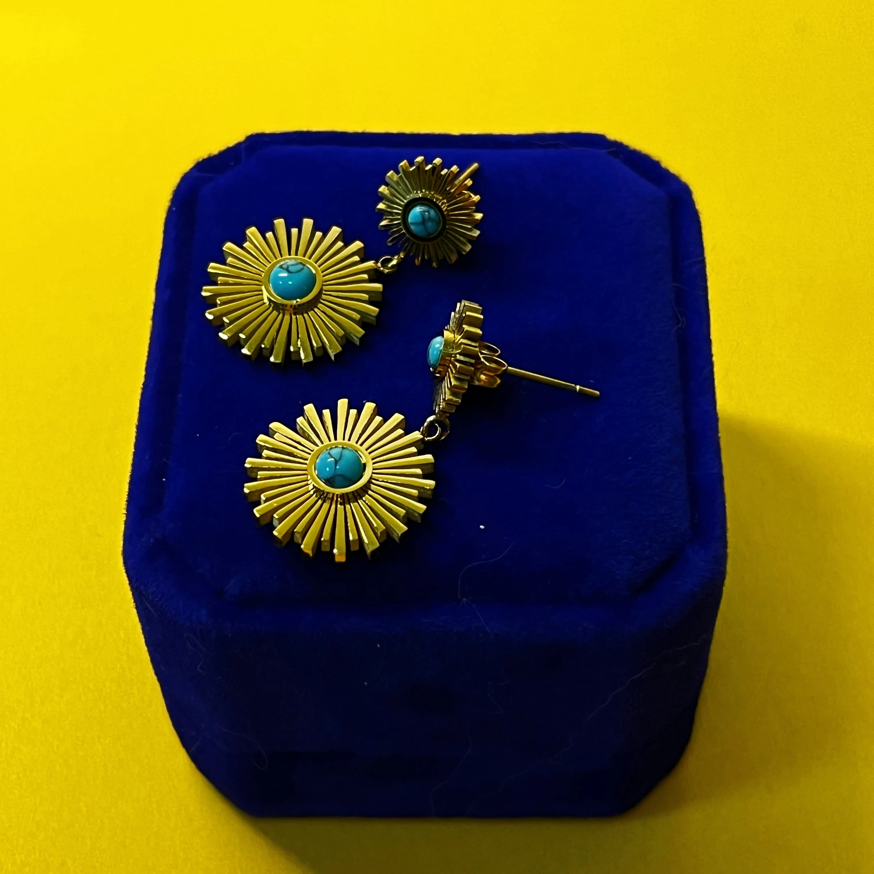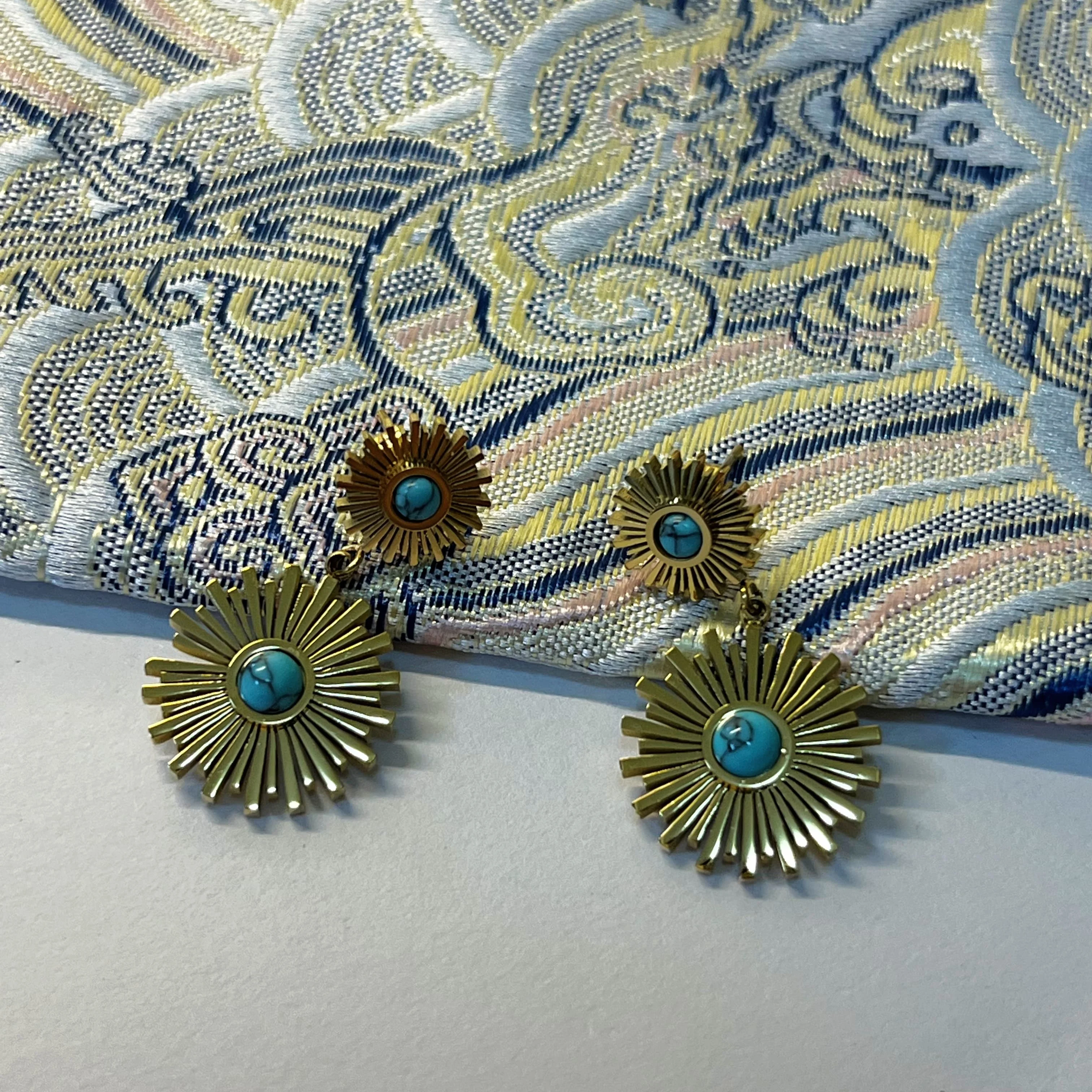18k Gold Plated Stainless Steel Sunflower Earrings Female Blue Turquoise Pendant Titanium Steel Earrings