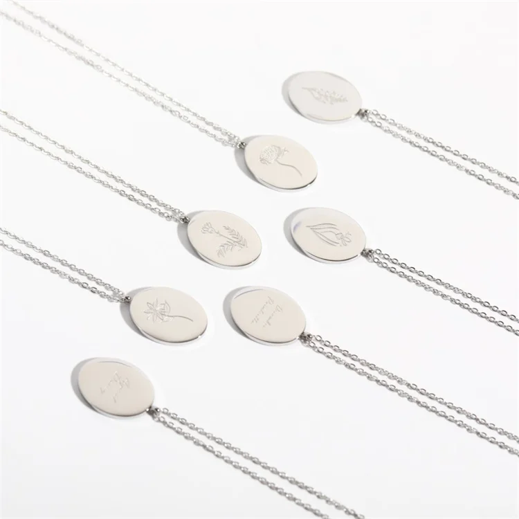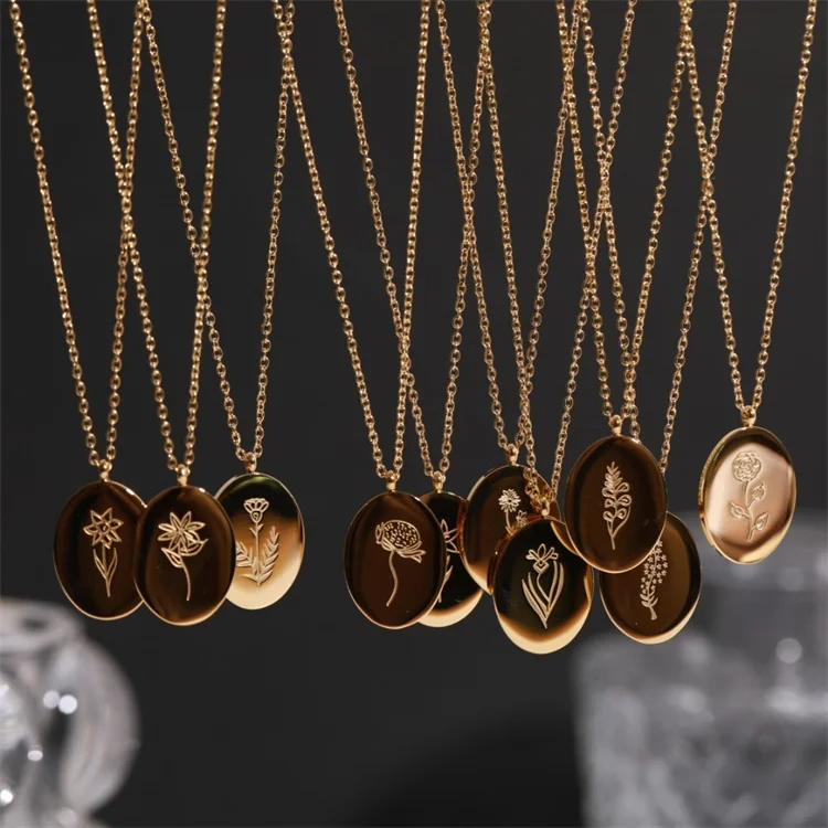 Product Name: 18k Gold Plated Stainless Steel Tarnish Free Female Month Flower Jewelry Oval Birth Flower Pendant Necklace for Women
