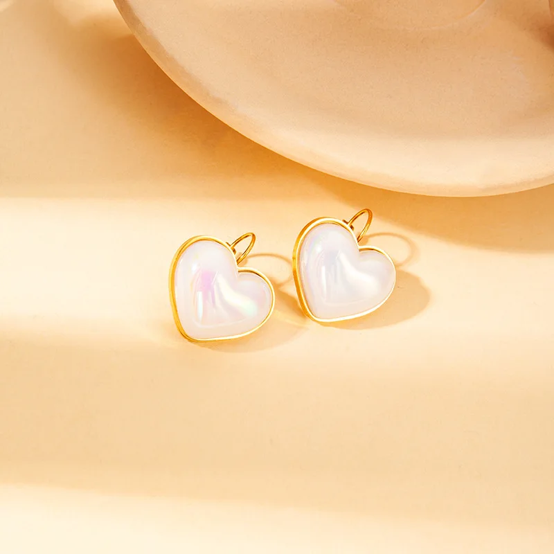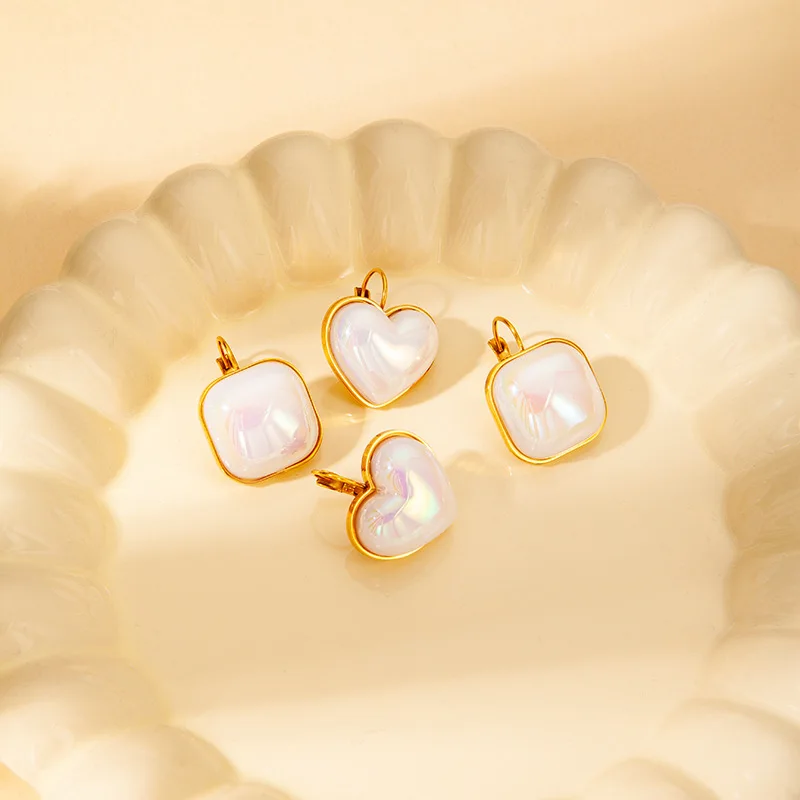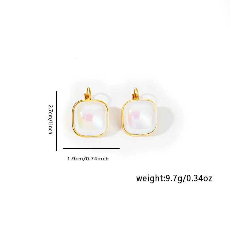 Product Name: 18K Gold Plated Stainless Steel Women White Shell Heart Square Earrings Minimalist Summer Jewelry