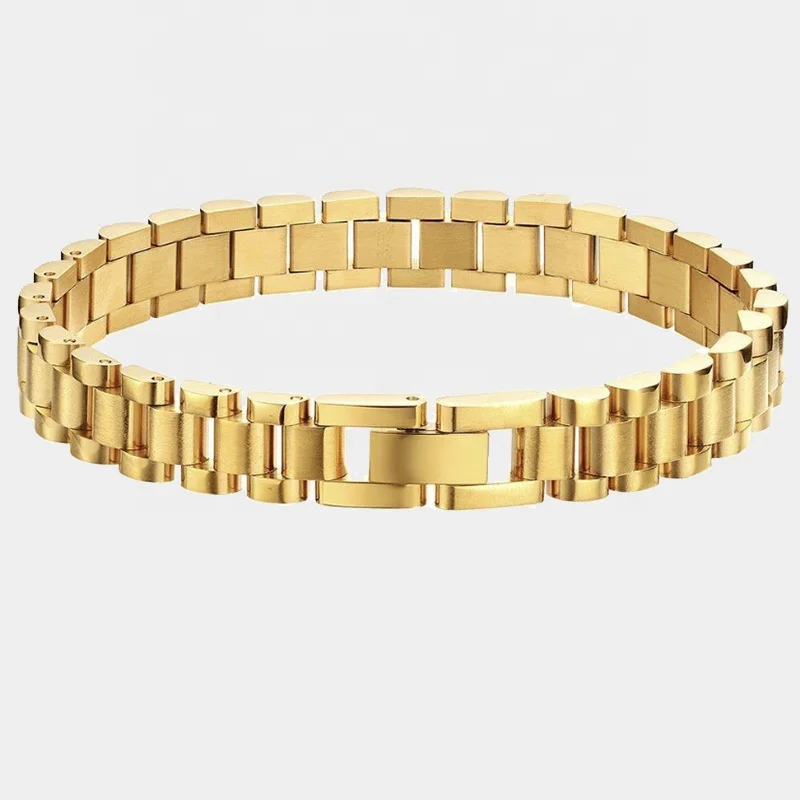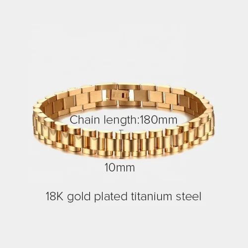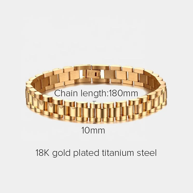 18K Gold Plated Titanium Steel Chain Bracelet for Women Men Removable 10mm Width Watch Band Bracelet