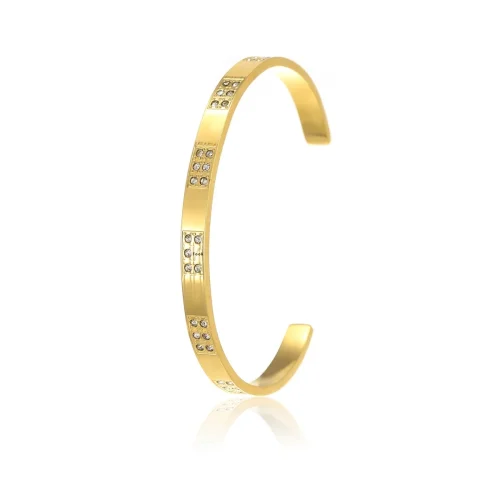 18K Gold Plated Versatile Stainless Steel Bracelet High-End Open Style Zircon Inlay Fashion Bangle