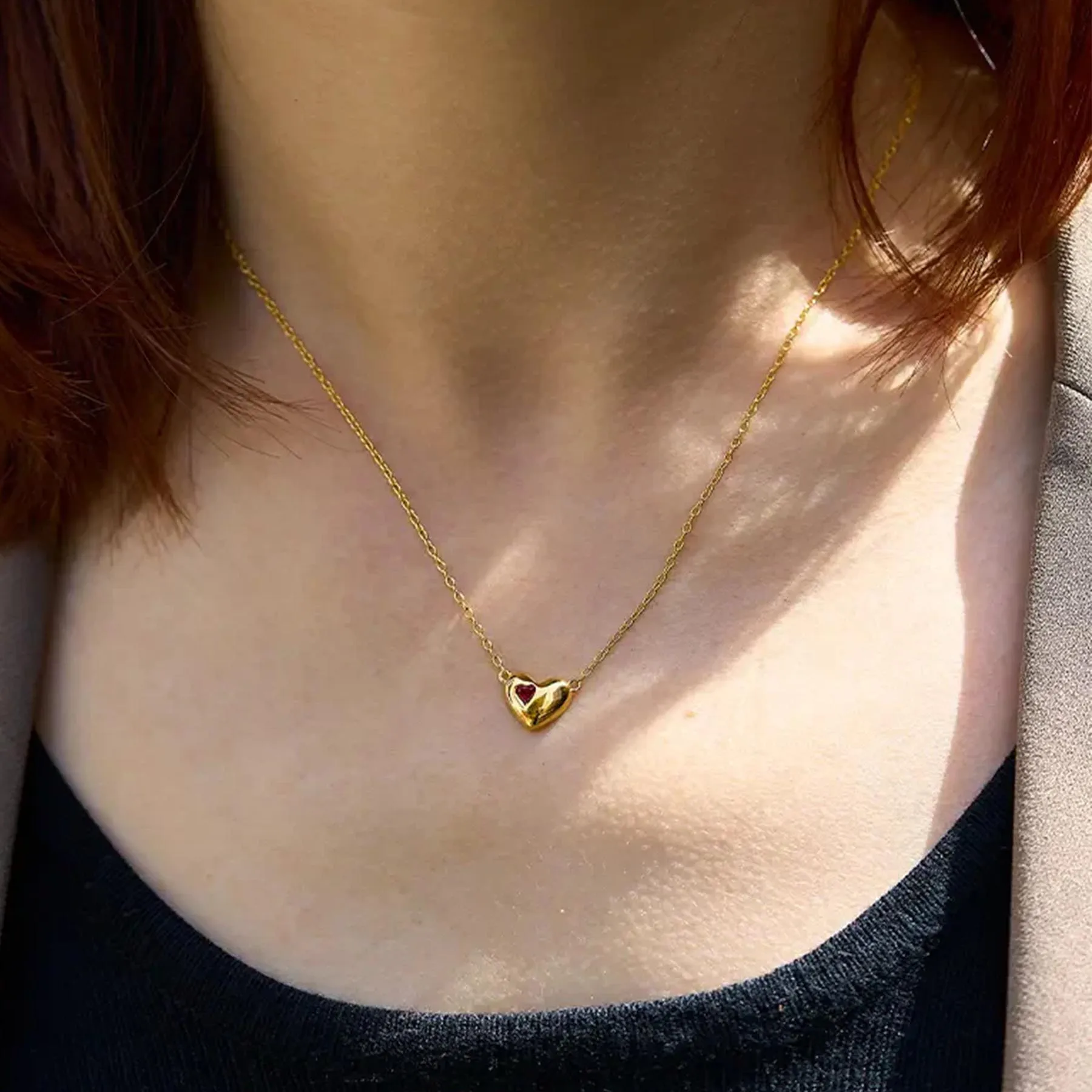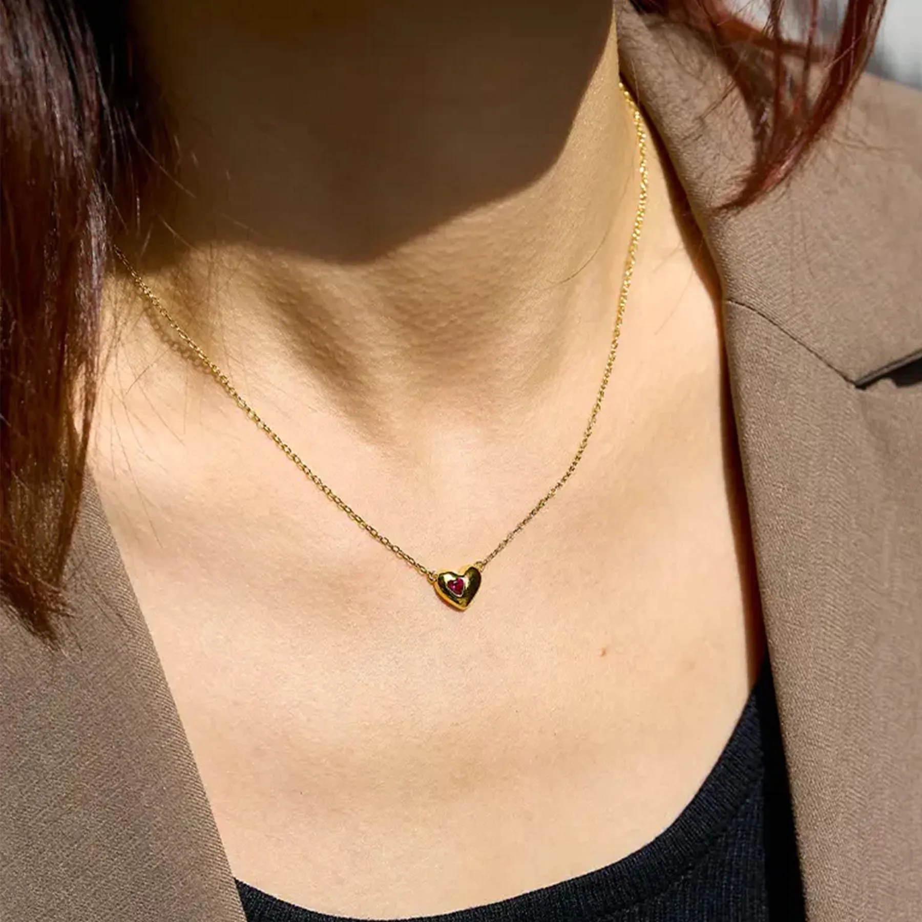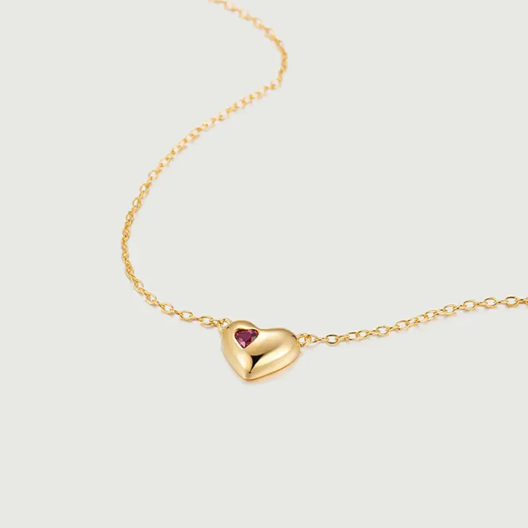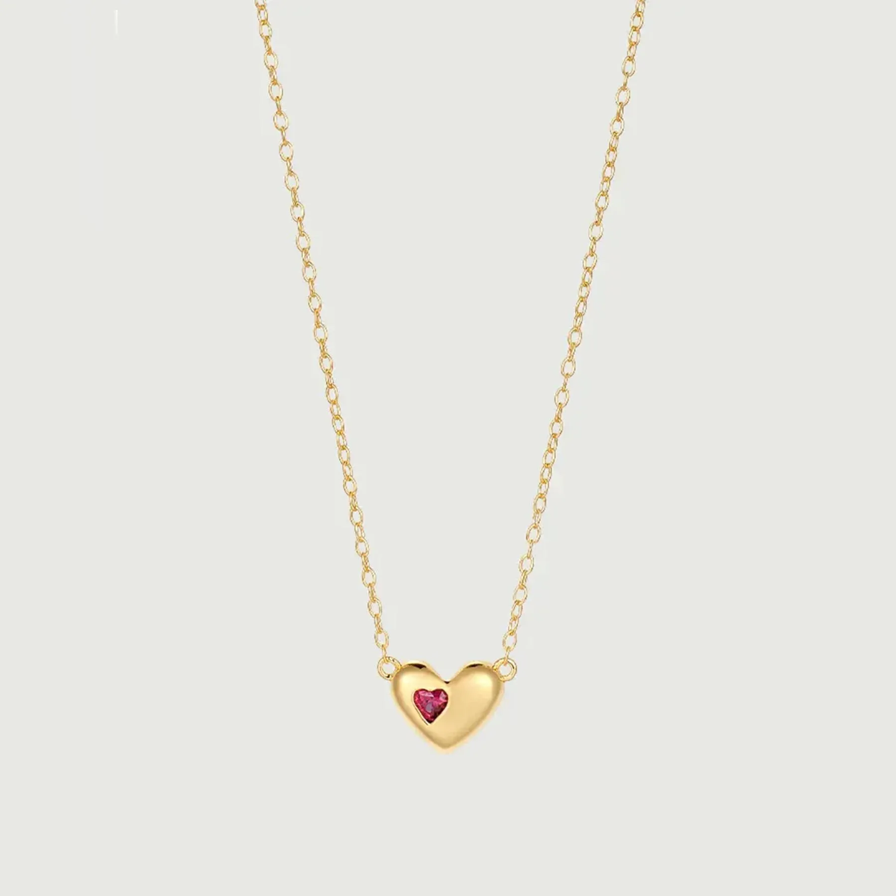 Product Name: 18K Gold Ruby Heart Pendant Necklace Fashion Fine Personalized Gold Plated Girls Necklace Sterling Silver Necklace