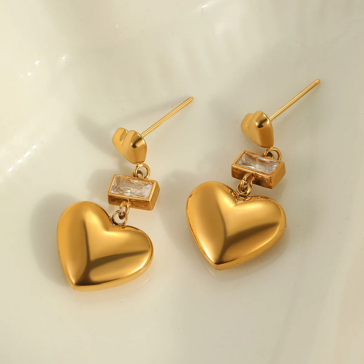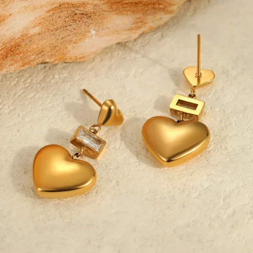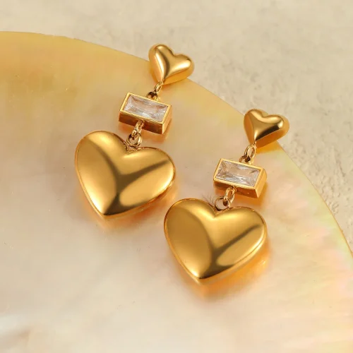 Product Name: 18K Gold Simple Woman’s Earrings with Double Heart Pendant Fashionable INS Niche Design Drop Earrings for