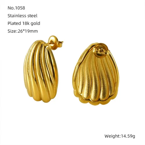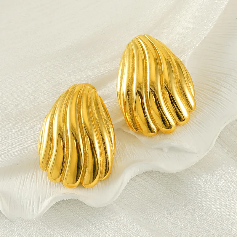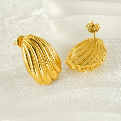 Product Name: 18k Gold, Stainless Steel, Gold-plated Titanium Steel Earrings, Earrings, Twisted Shell Pattern, Striped Stud Earrings, Female