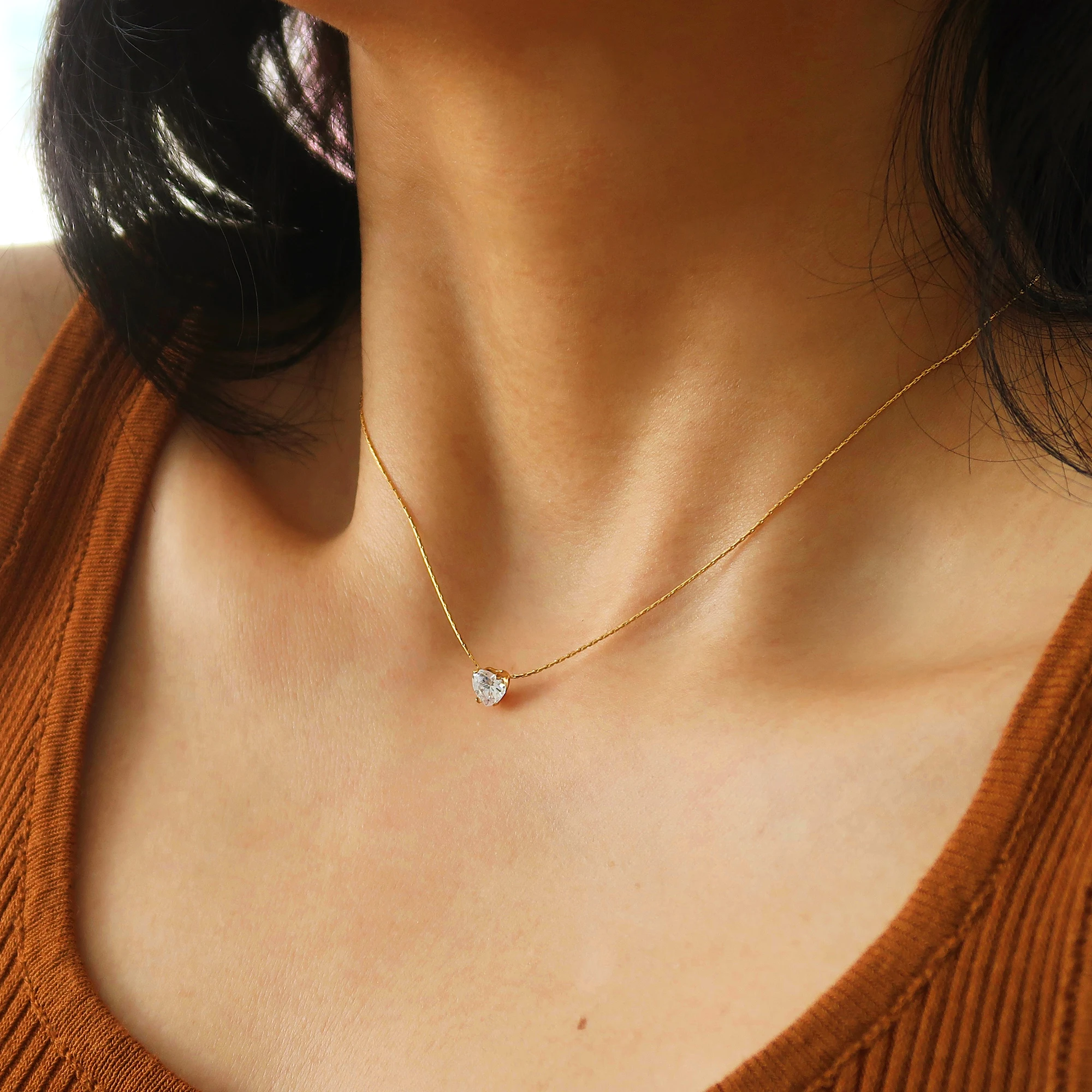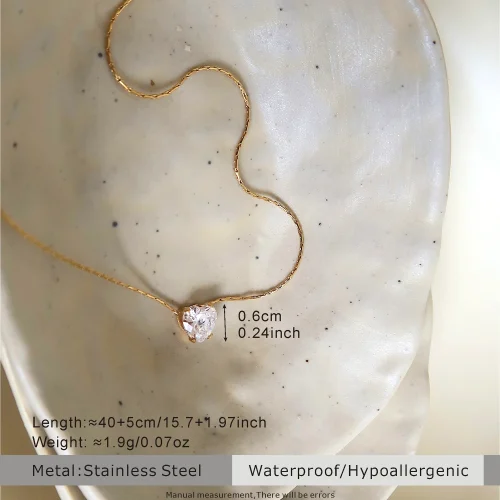 Product Name: 18k Gold Stainless Steel Simple love Diamond Heart Crystal Pendant Thin Chain Luxury Woman Necklace Daily Jewelry for Girls