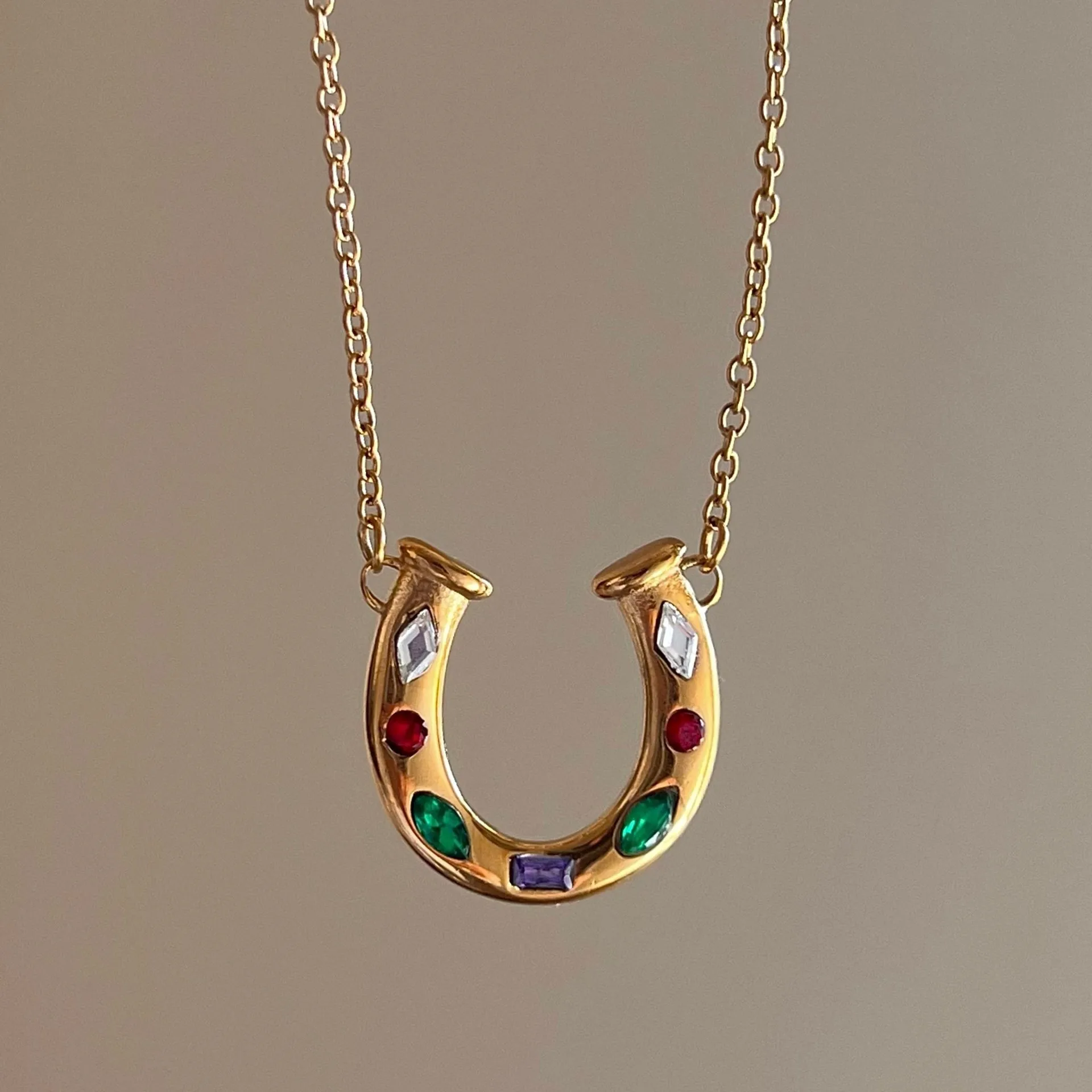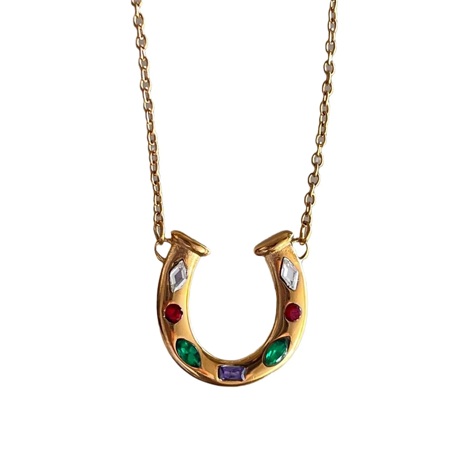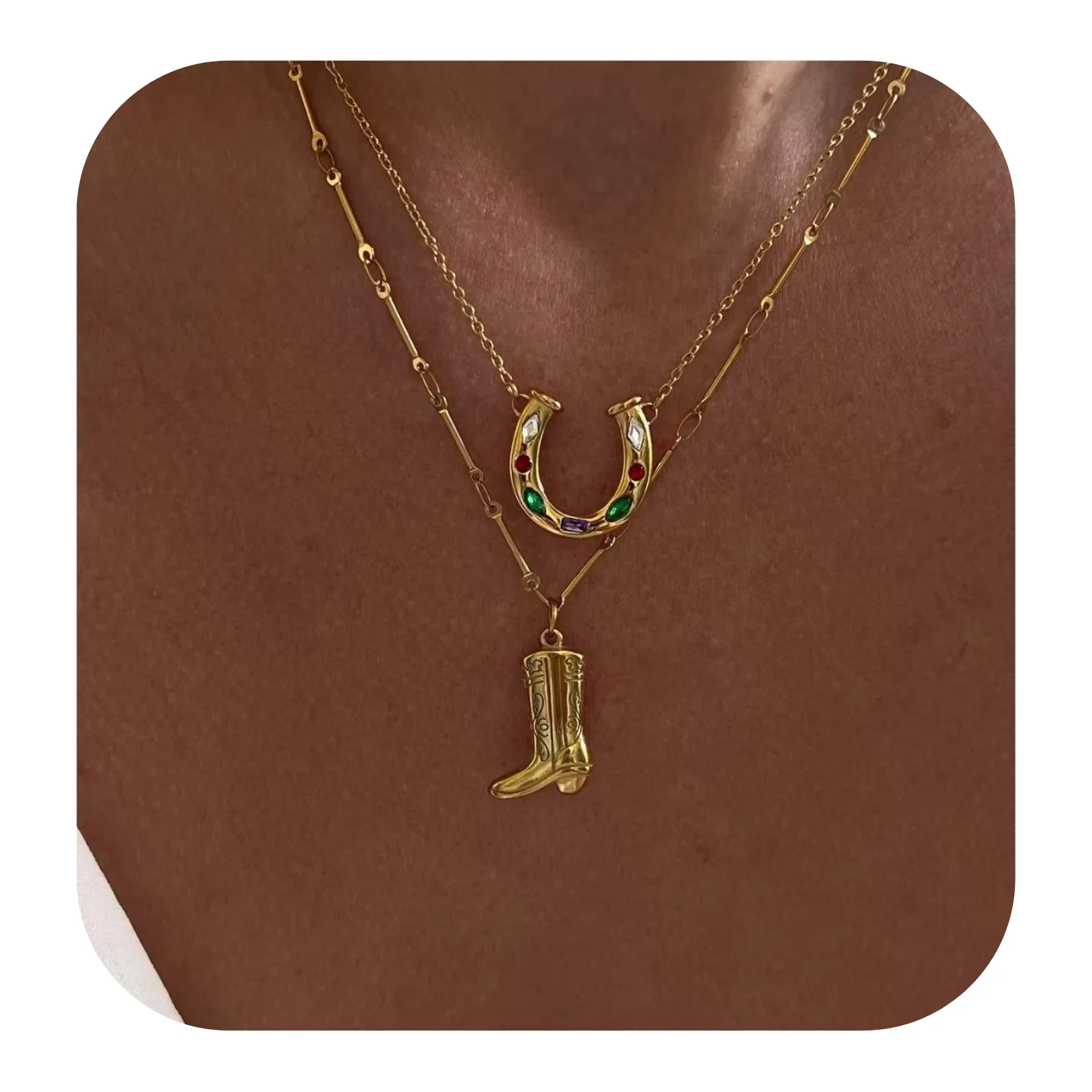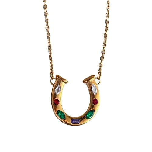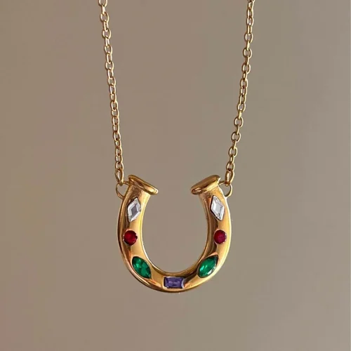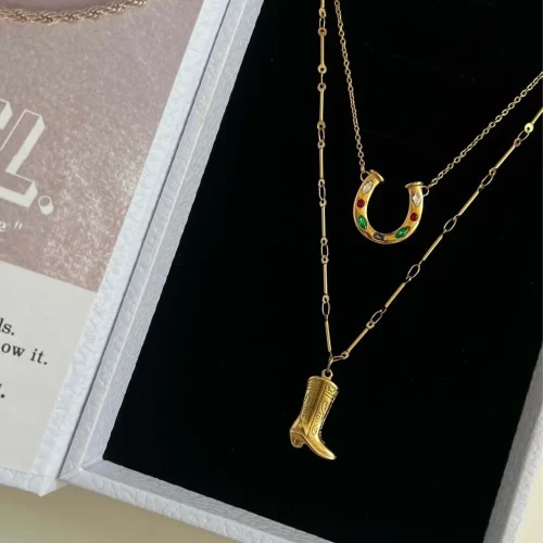 18K Gold Stainless Steel Western Anti Tarnish Jewellery Colorful Cz Lucky Horseshoe Cowboy Boot Pendant Necklaces