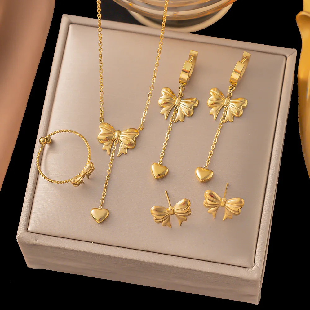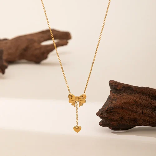 Product Name: 18K Gold-plated Bow Pendant Fashionable Jewelry Necklace Set Women’s Accessories Dopamine Collarbone Chain