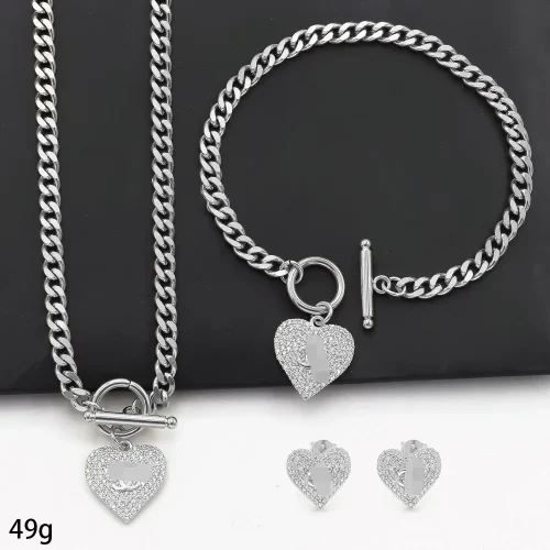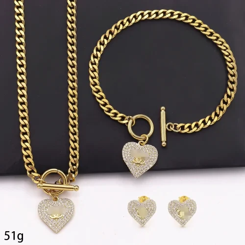 Product Name: 18K Gold-Plated Necklace Set Trendy Heart-Shaped V-Diamond Encrusted Hollow Snake Chain with Pendant