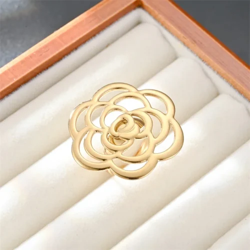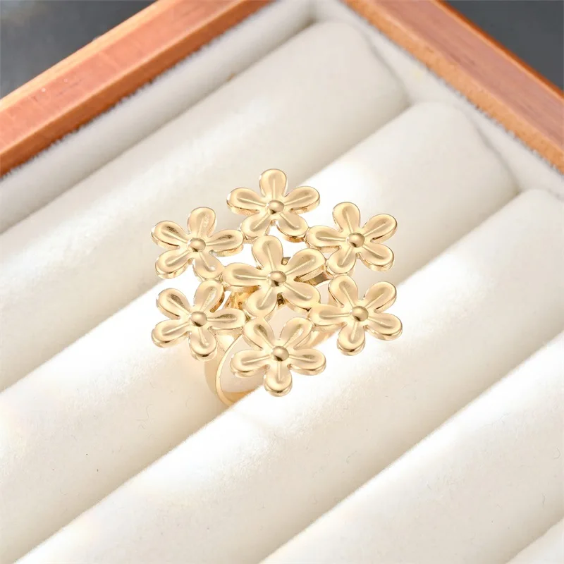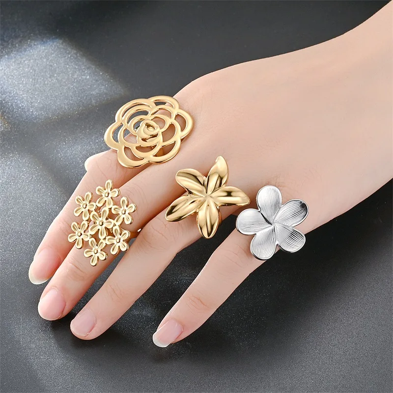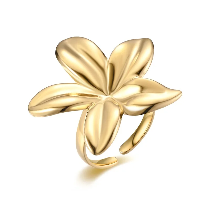 Product Name: 18K Gold-plated Trendy Jewelry, Exaggerated Romantic Flower Opening Titanium Steel Ring, Ladies’ Personalized Zou Ju Petal Ring
