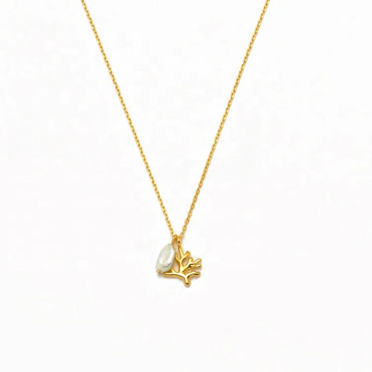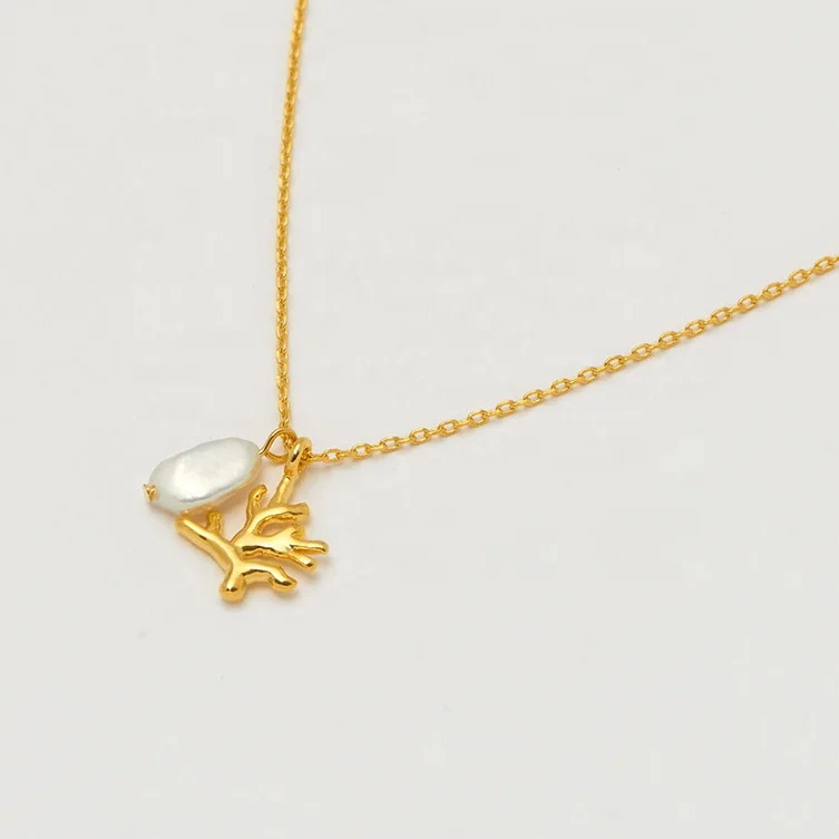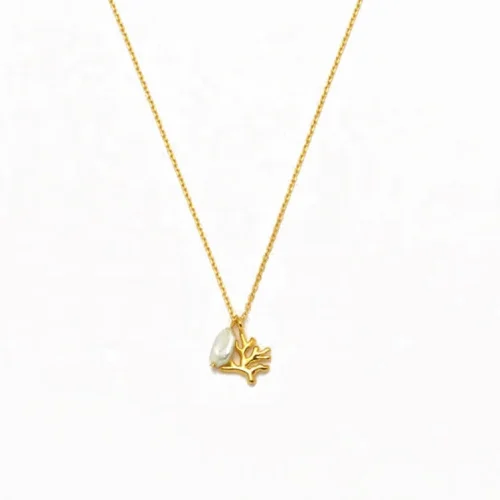 Product Name: 18K PVD Gold Plated Stainless Steel Waterproof Non Tarnish Freshwater Pearl Coral Charm Pendant Necklace Women Fashion Jewelry