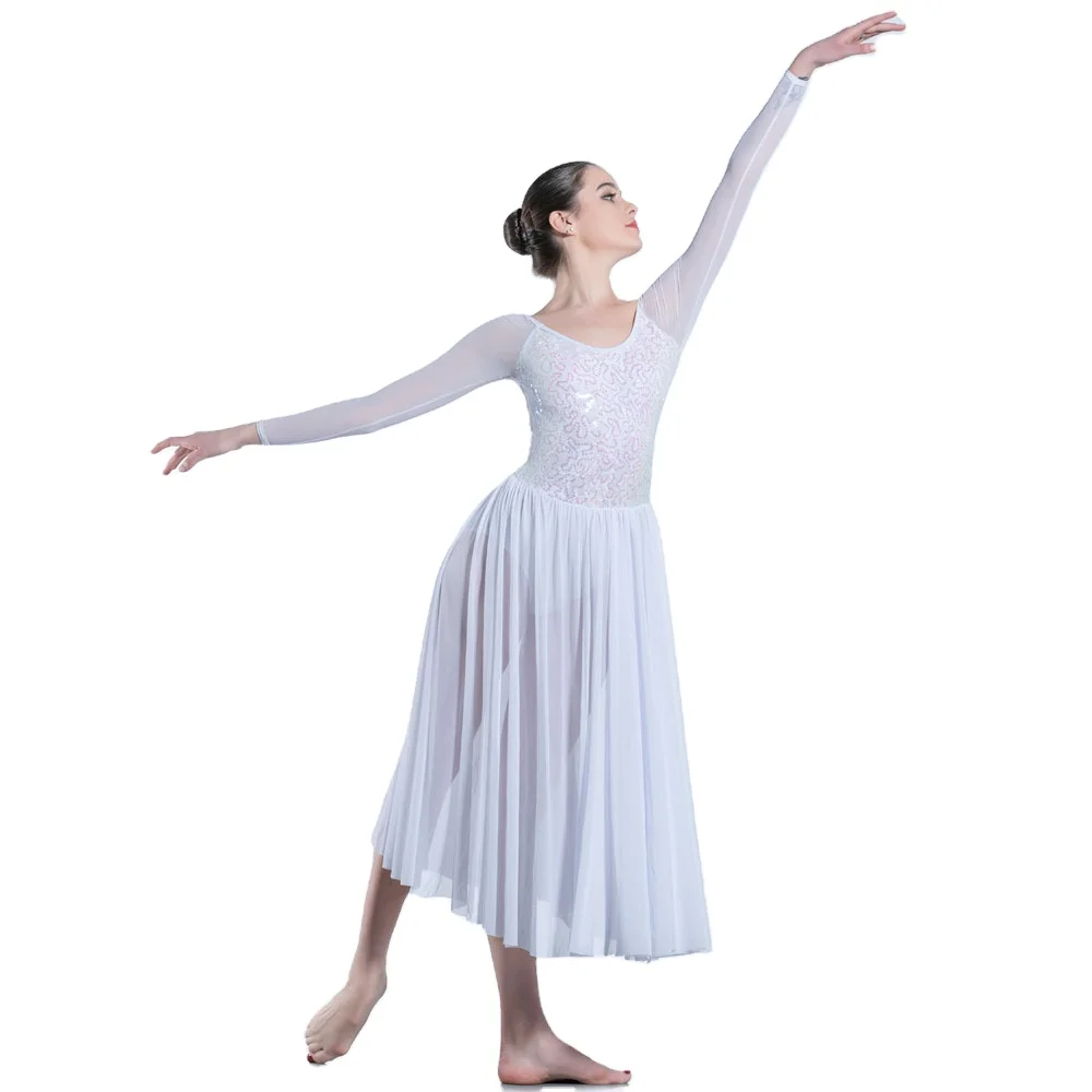 Product Name: 19615 Long Sleeve White Ballet Dress Lyrical & Contemporary Dance Costume Dancewear