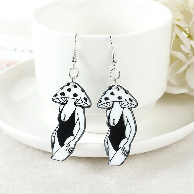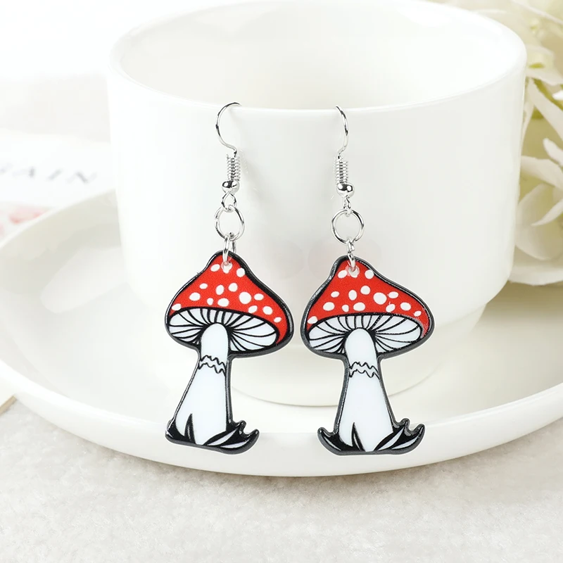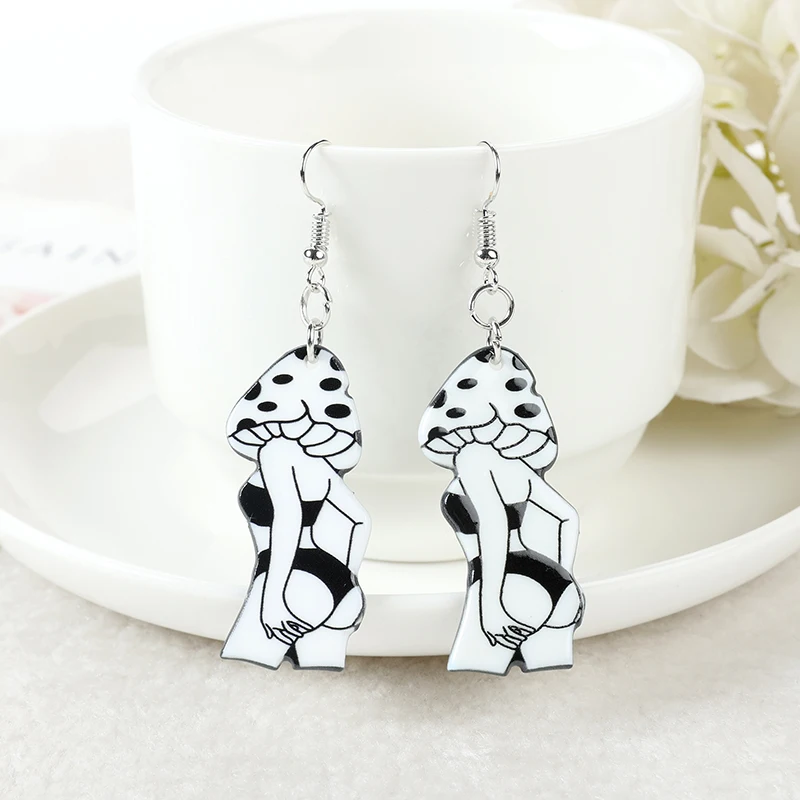 Product Name: 1Pair Magic Mushroom Girl Dangle Earrings Creative Acrylic Sexy Lady Earring for Women Birthday Gift