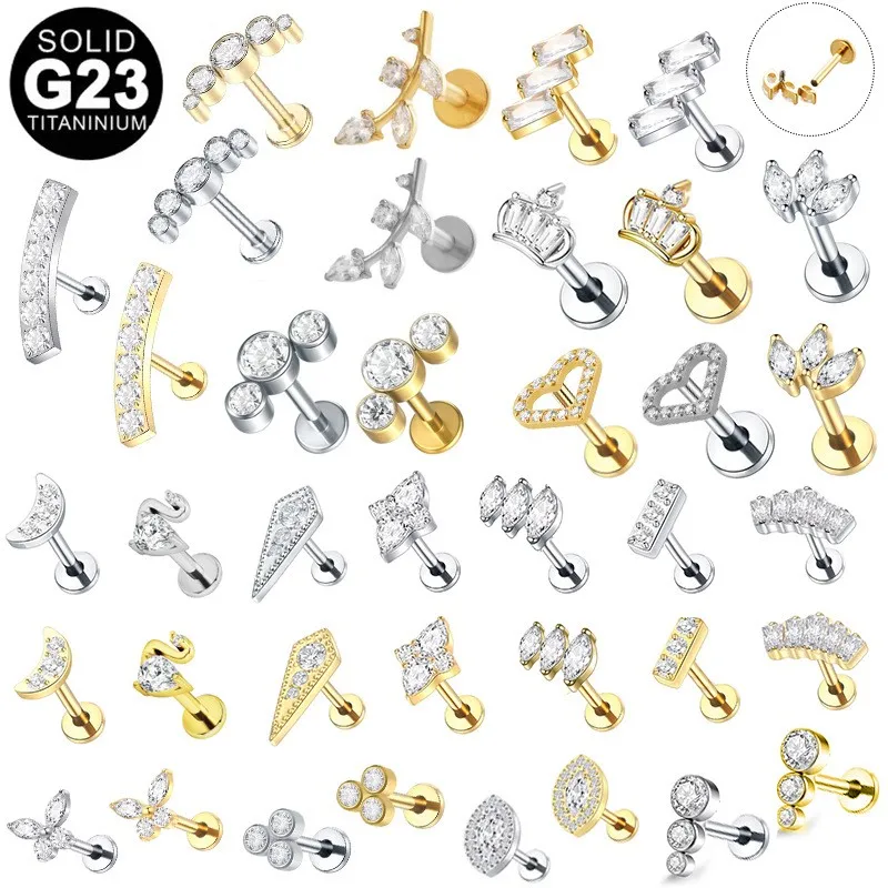 Product Name: 1PCS G23 Titanium Stud Earrings Copper Encrusted CZ Zircon Lip Ring Fashion Women’s Personalized Body Piercing Accessories