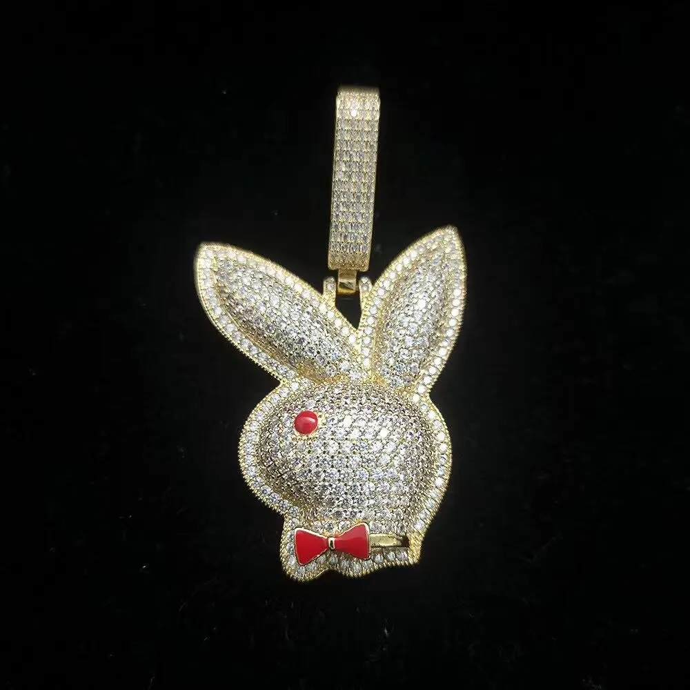 2021 Big Sale Charm Moissanite Jewelry Hiphop 925 Silver Brass Copper Iced Out Play Rabbit Necklace Pendant for Men and Women