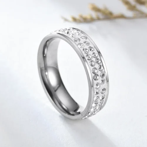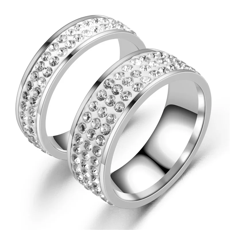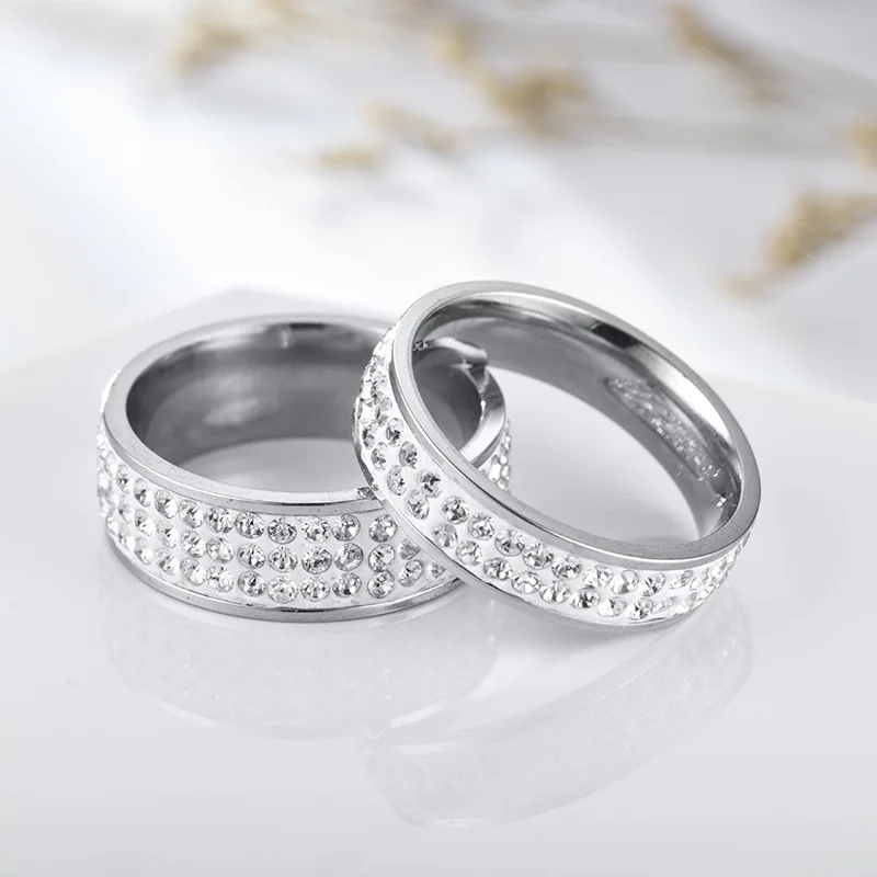 2021 Elegant Bling Diamond Zircon Silver Stainless Steel Couple Rings Creative Engagement Party Anniversary Jewelry