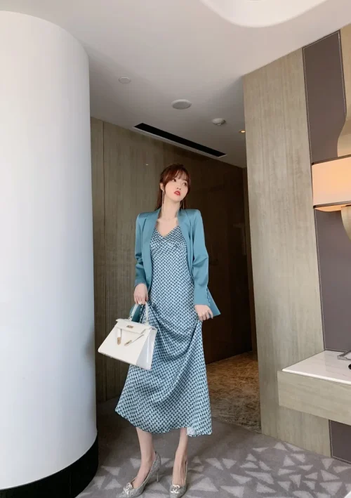 2021 New Fashion Suit Jacket Strapless Tube Top Houndstooth Two-piece Dress