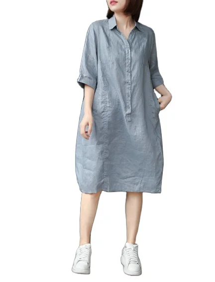 Product Name: 2021 New Women Summer Casual Loose Linen V-neck Shirt Dress