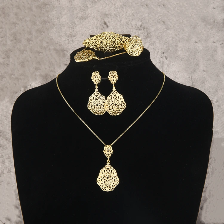 2021 Simple Fashion Retro Jewelry Set Includes Necklace Earrings Bracelet Ring-for Wedding and Party