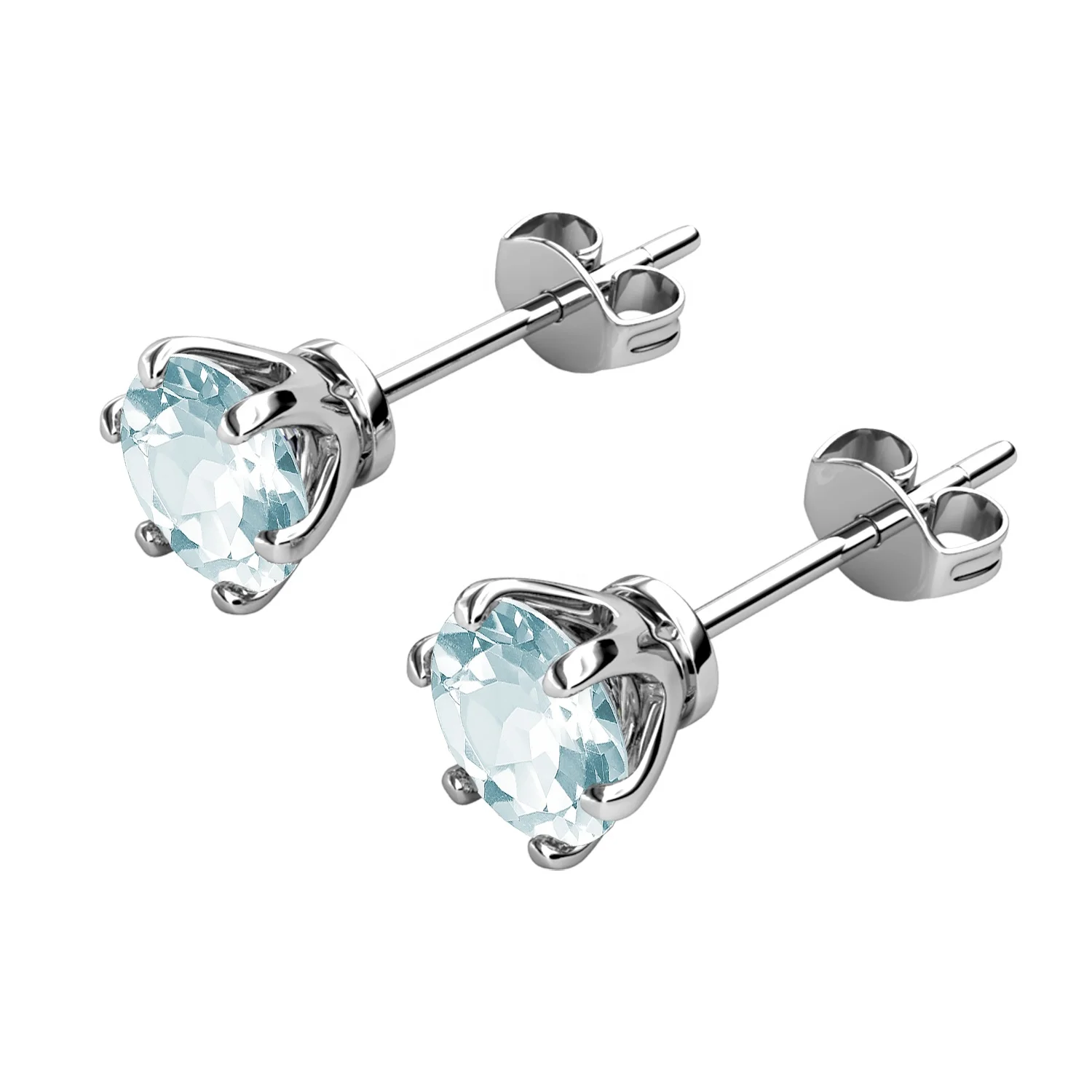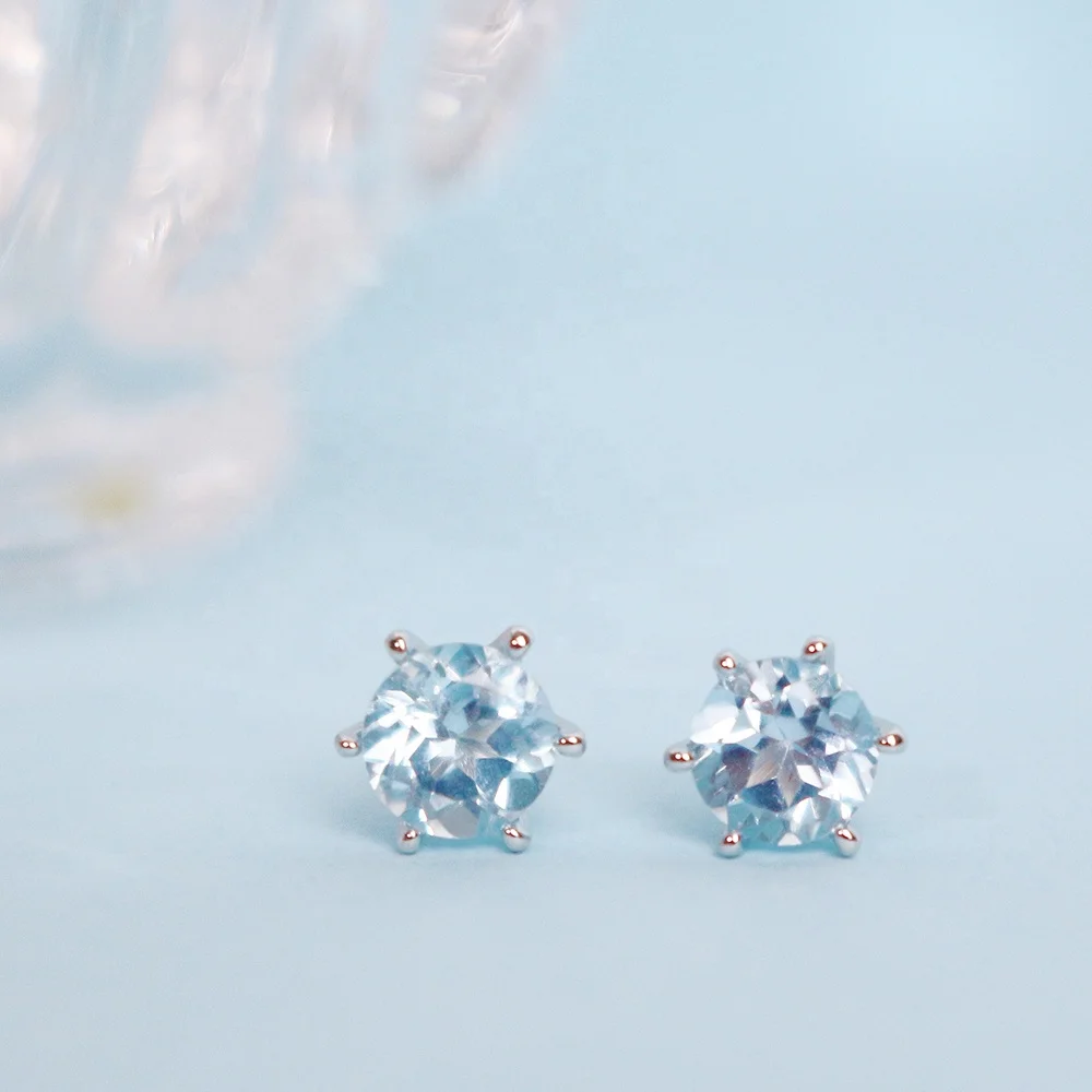 2022 Best Natural Gemstone Jewelry 925 Silver Blue Topaz Stone Solitaire Stud Earrings for Women Destiny Jewellery