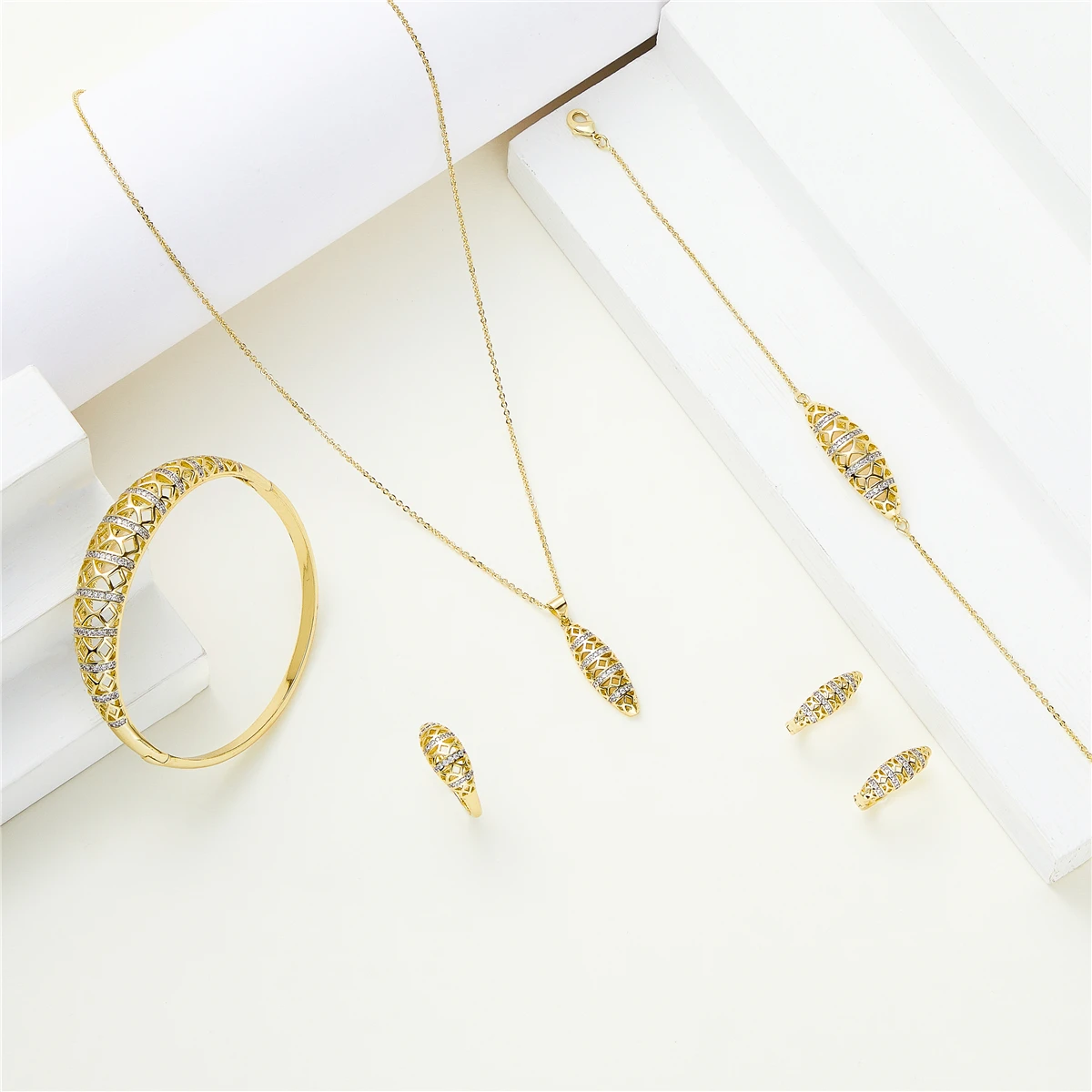 2022 New Jewelry Set Personalized Gold Ring Bracelet Earring Necklace Pendant Jewelry Dazzling Jewelry Wedding Accessories