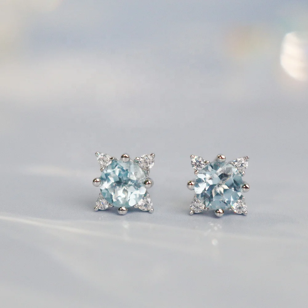 Product Name: 2022 New Natural Gemstone Jewelry 925 Sterling Silver Sky Blue Topaz Stud Earrings for Women Destiny Jewellery