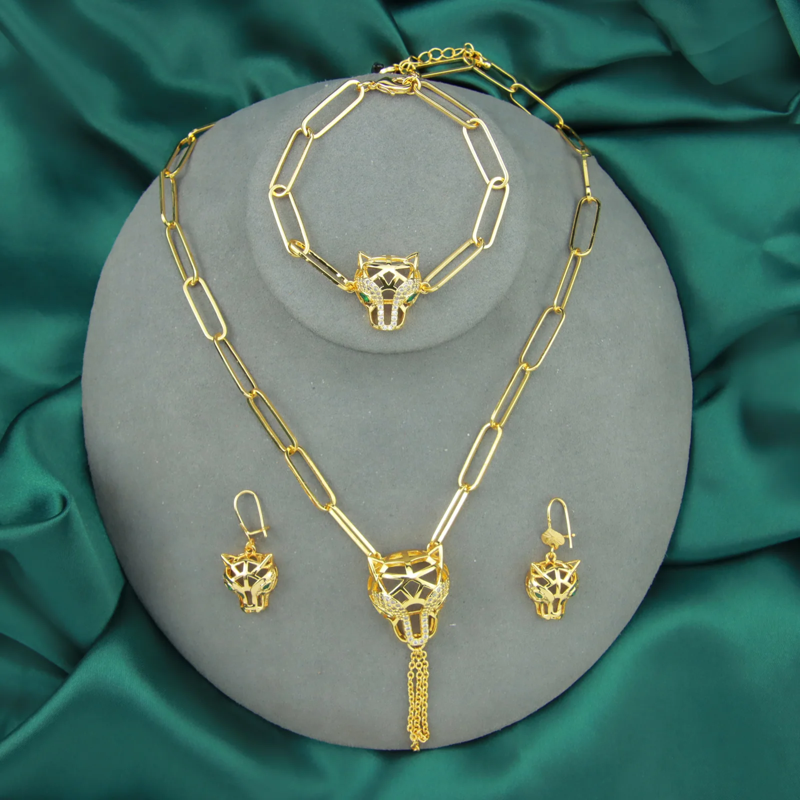 2022 Popular Style Women Leopard Jewelry 18k Gold Plated Jewelry Set Copper Jewelries 3pcs Sets