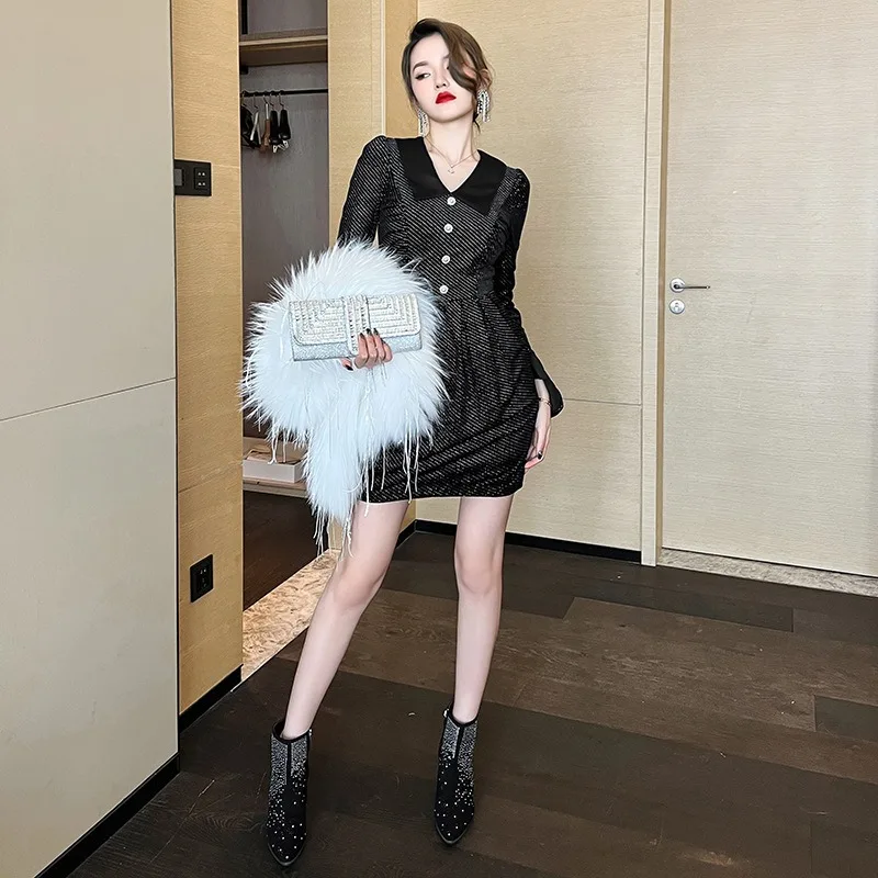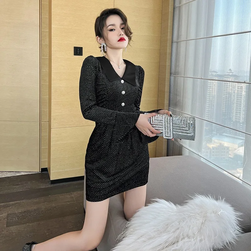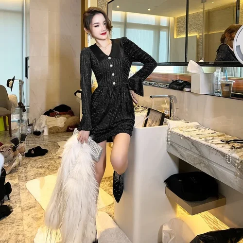 Product Name: 2022 Spring New Hepburn Style Long-sleeved Waist Slimming Lantern Dresses Women Female Casual Dress