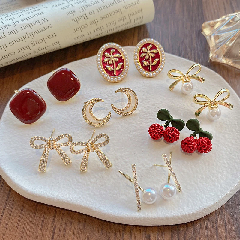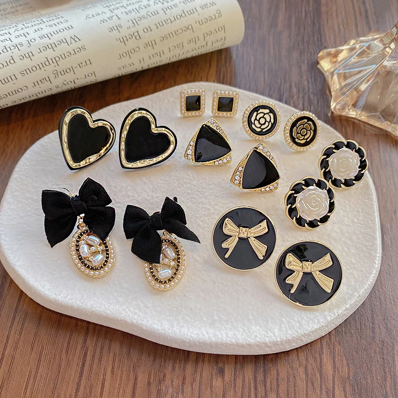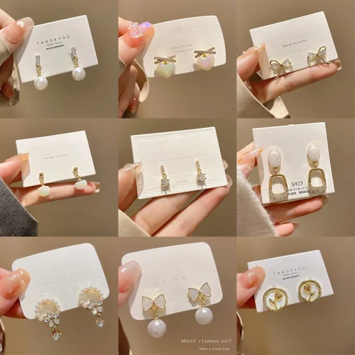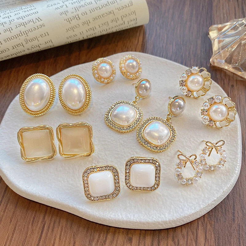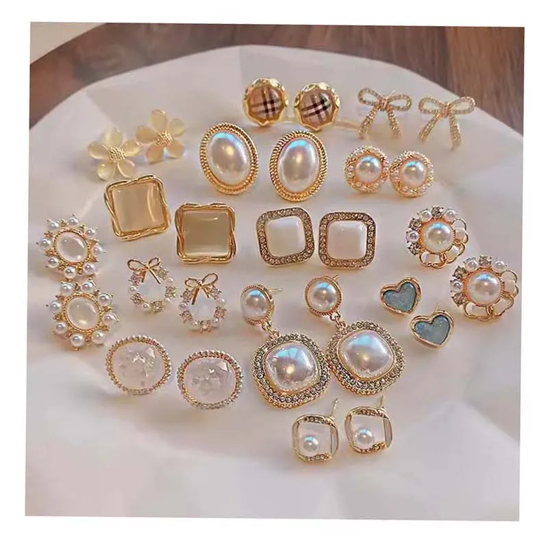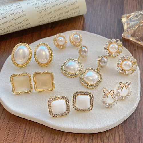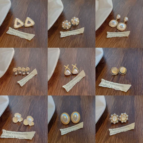 Product Name: 2023 Elegant Needle Round Half Pearls Flower Heart Stud Earring for Women Girl Charm Dainty Jewelry