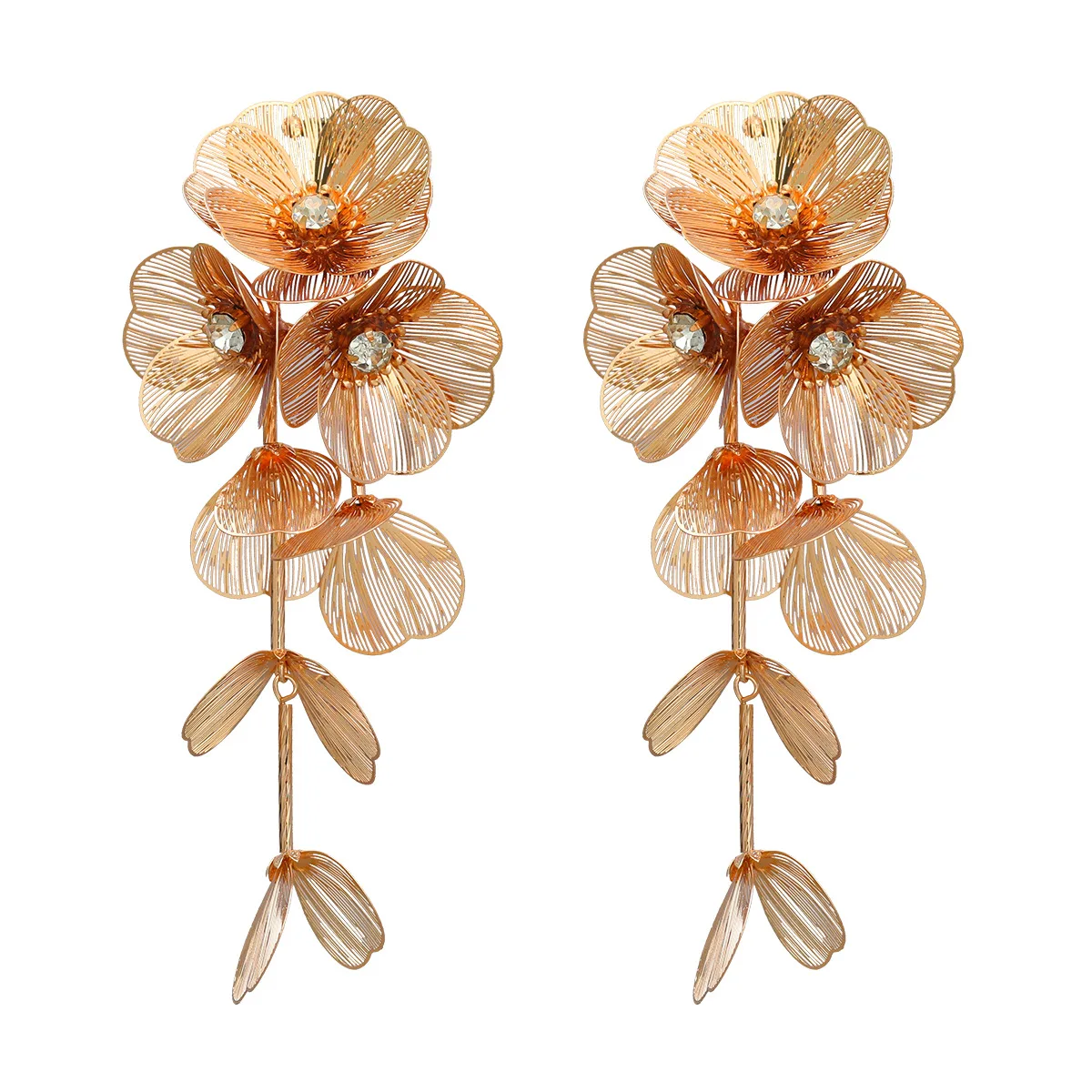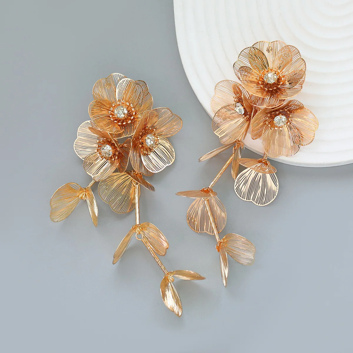 2023 Exaggerated Women Jewelry Spring New Multi Layered Metal Flower Earrings