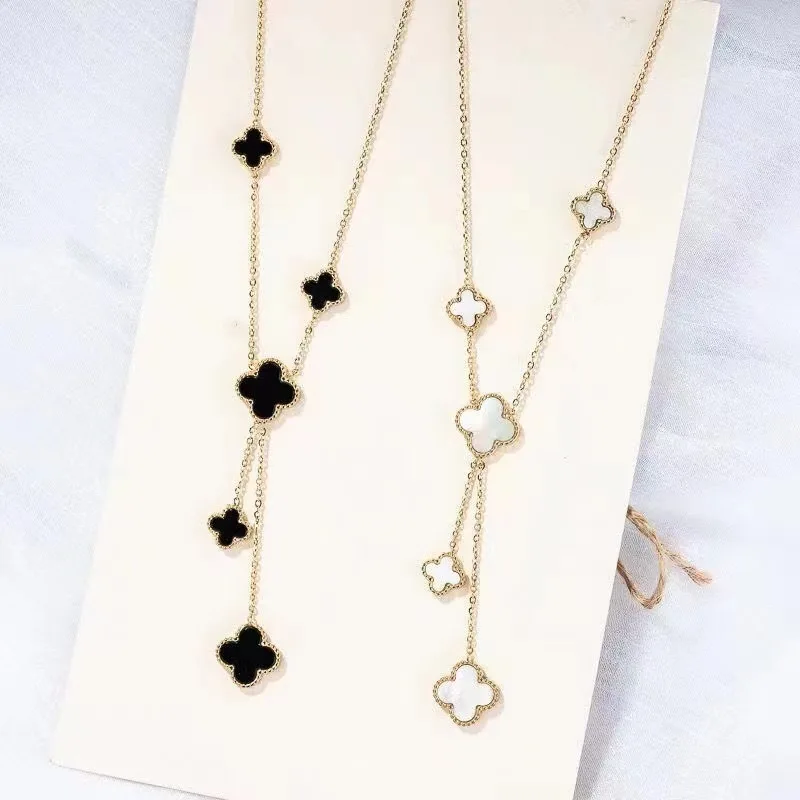Product Name: 2023 Fashion Exquisite Jewelry Black and White Lucky Girl Birthday Gift Stainless Steel Four Leaf Necklace