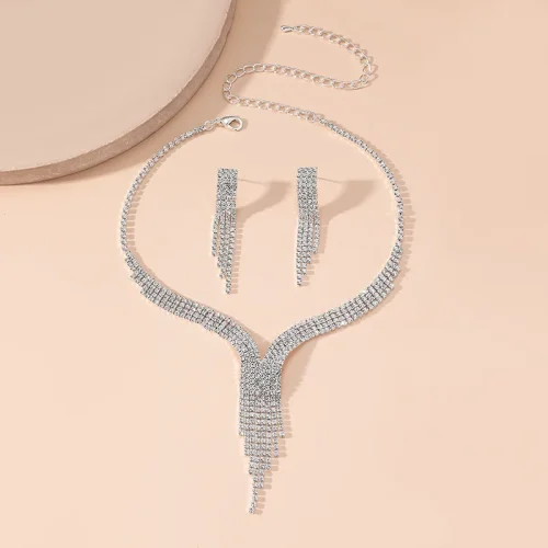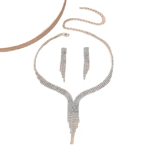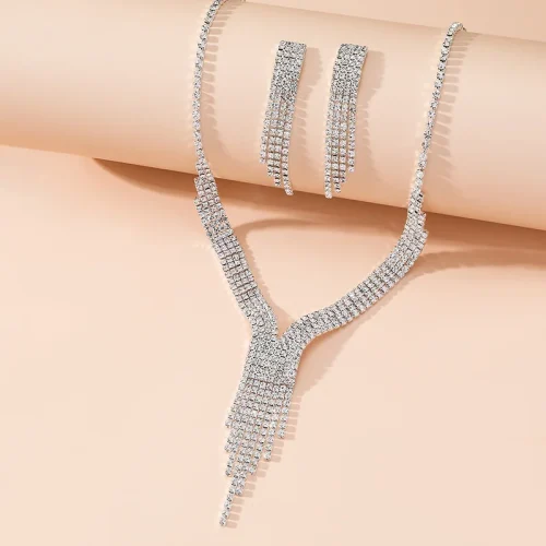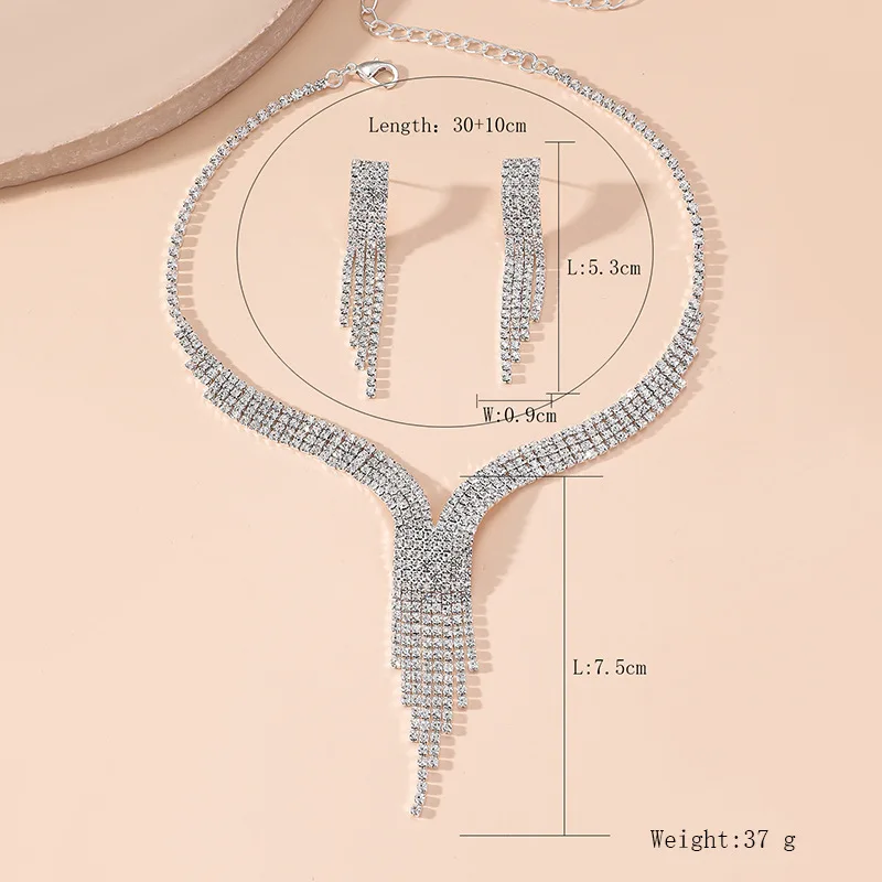 Product Name: 2023 Fashion Jewelry Sets Necklace Earring Set Claw Chain Rhinestone Necklace Earrings Set Wedding Bridal Jewelry Women