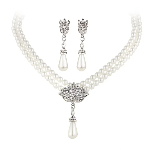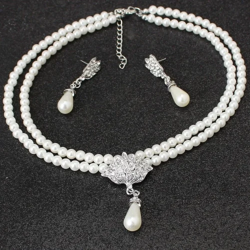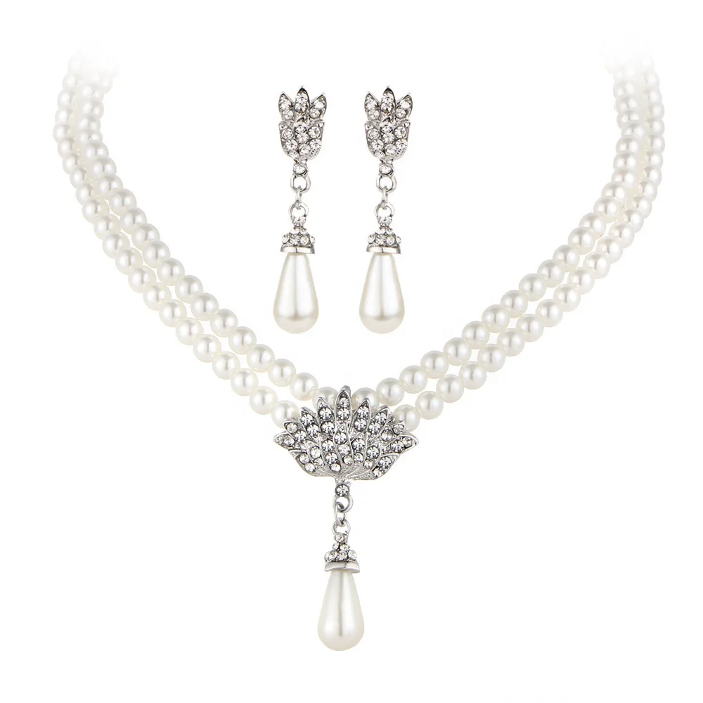 Product Name: 2023 Fashion Necklace Jewelry Sets for Women Wedding Bride Crystal Pearl Crystal Diamond Short Necklace Earrings Jewelry Sets