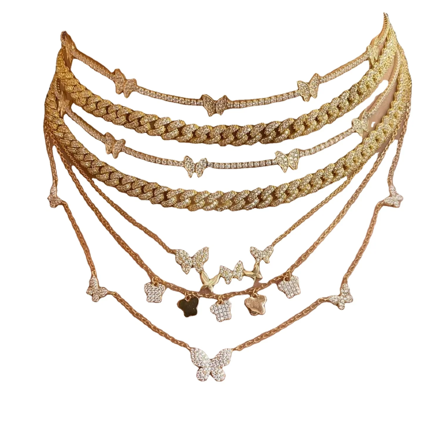 2023 Gold Butterfly Temperament European and American Style Zircon Collarbone Necklace
