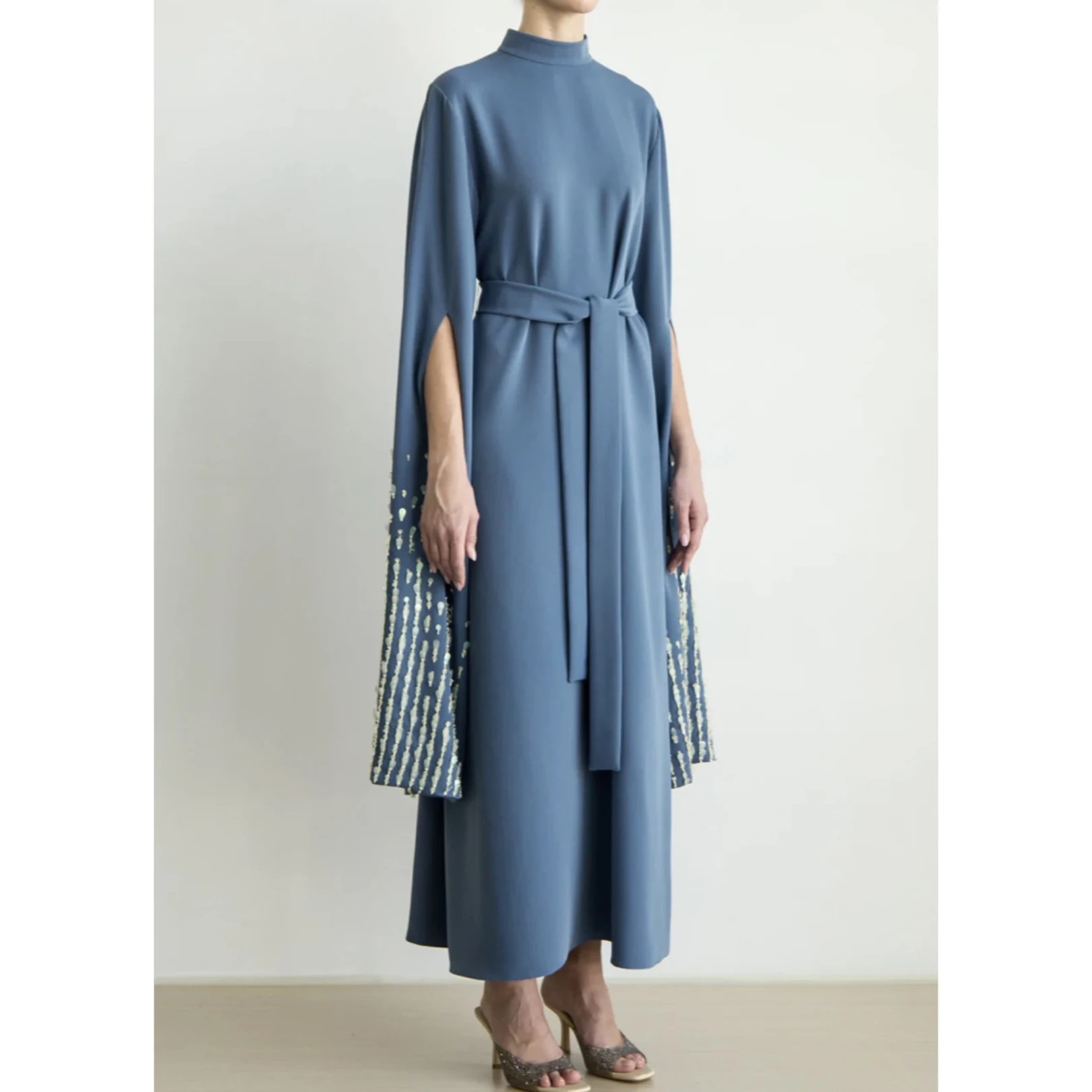 Product Name: 2023 High Quality Women Lady Elegant Dresses O-Neck Floral Print Long Sleeve Ruffled Casual Dresses
