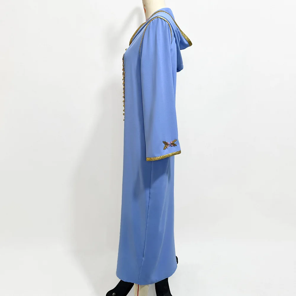 Product Name: 2023 New Fashion Hooded Dress Hand-Stitched Diamond Gold Tube Robe Plus Size Women’s Clothing
