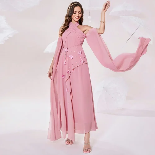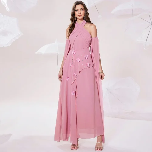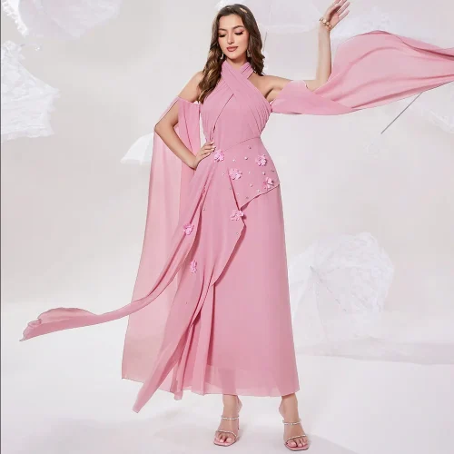 Product Name: 2023 New Middle East Women’s Party Dress Sleeveless Indian Pakiastani pink Evening Dresses for Women Trip Travel Wear Clothing