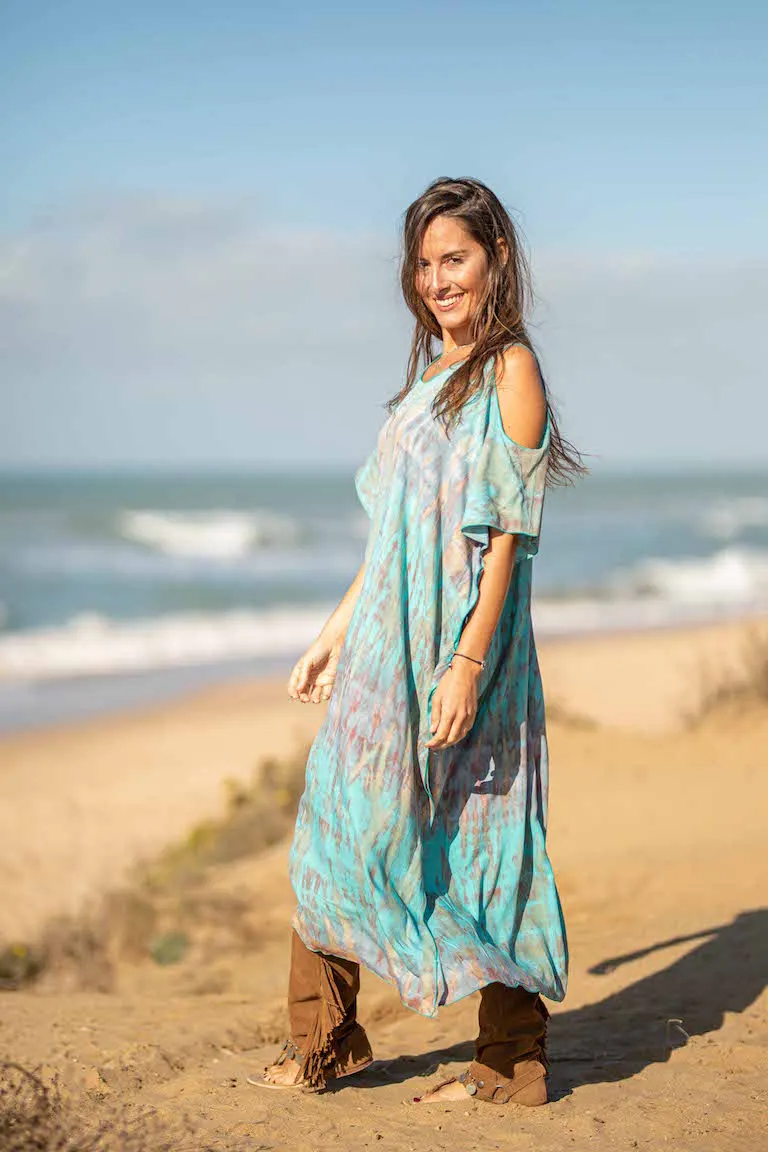 Product Name: 2023 New Trendy Backless Sundresses Women Tie Dye Women Summer Fashion Cut Shoulder Maxi Dress